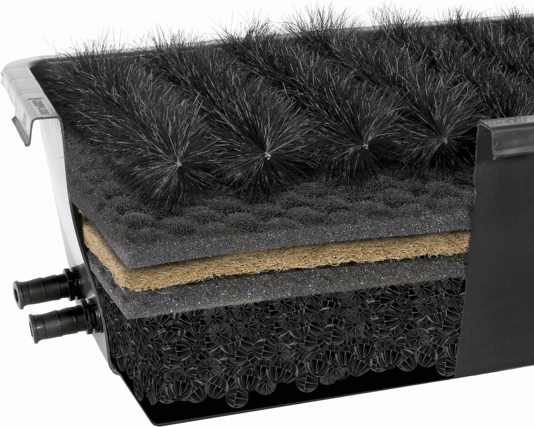 Die Medien sind in Schichten angeordnet. Bürsten eignen sich sehr gut für die Wasseraufbereitung oder mechanische Filtration. Gleichzeitig bieten sie ein hervorragendes Substrat für die Entwicklung lebender Bakterienkulturen.