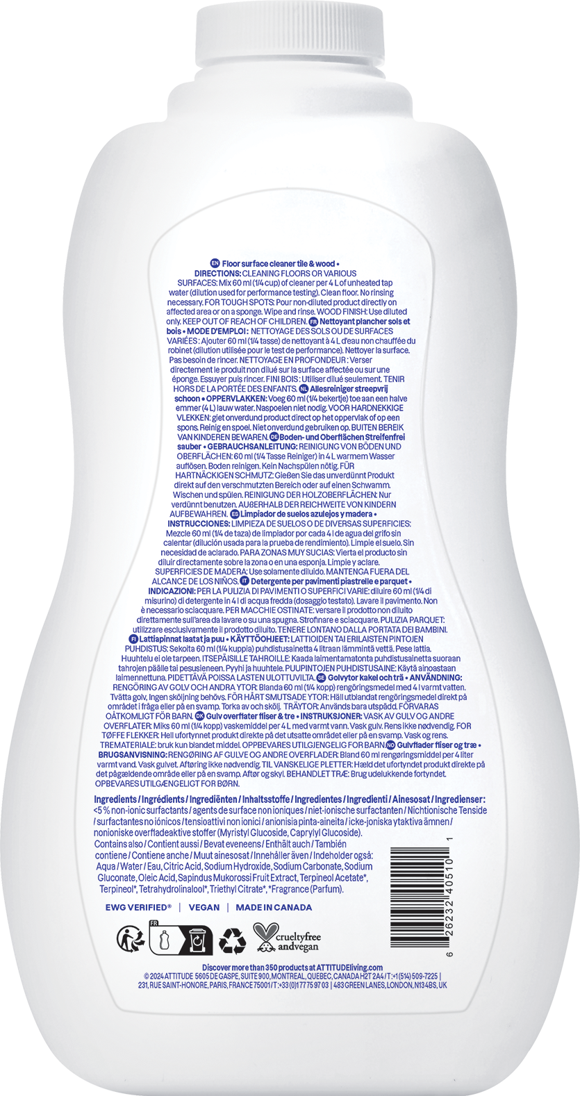 Der Bodenreiniger von ATTITUDE sorgt für gründliche Reinigung von Holzböden oder Fliesen. Er verfügt über starke Reinigungseigenschaften und verleiht Böden einen streifenfreien Glanz.
