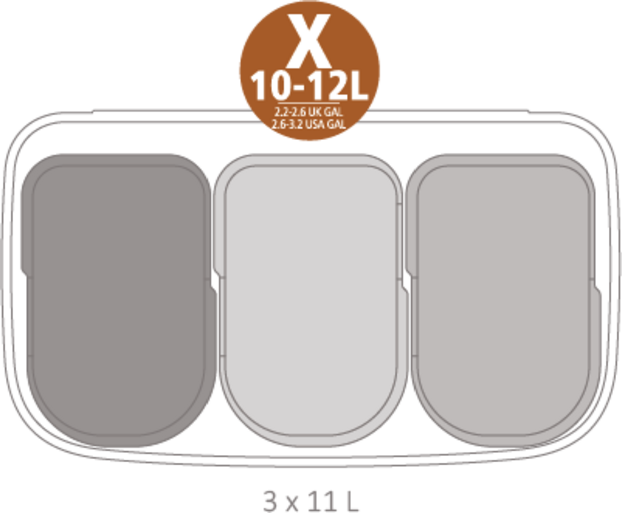 - Drei herausnehmbare Kunststoffeinsätze zu je 11 Liter - ideal für die Abfalltrennung zu Hause