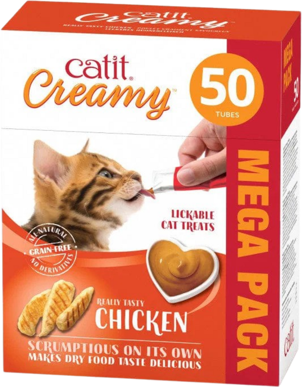 Catit Creamy ist ein cremiger Snack für Katzen, der sich ideal für die Belohnung zwischendurch eignet. Der hohe Fleischanteil macht die Creme zu einem tollen Ergänzungsfuttermittel und kann daher auch wunderbar mit Trockenfutter kombiniert werden. Catit Creamy enthält außerdem wertvolles Taurin und reichlich Aminosäuren, welche für deine Katze äußerst wichtig sind. Der Snack ist zudem frei von Getreide, Mais oder Soja und künstlichen Zusatzstoffen jeglicher Art.