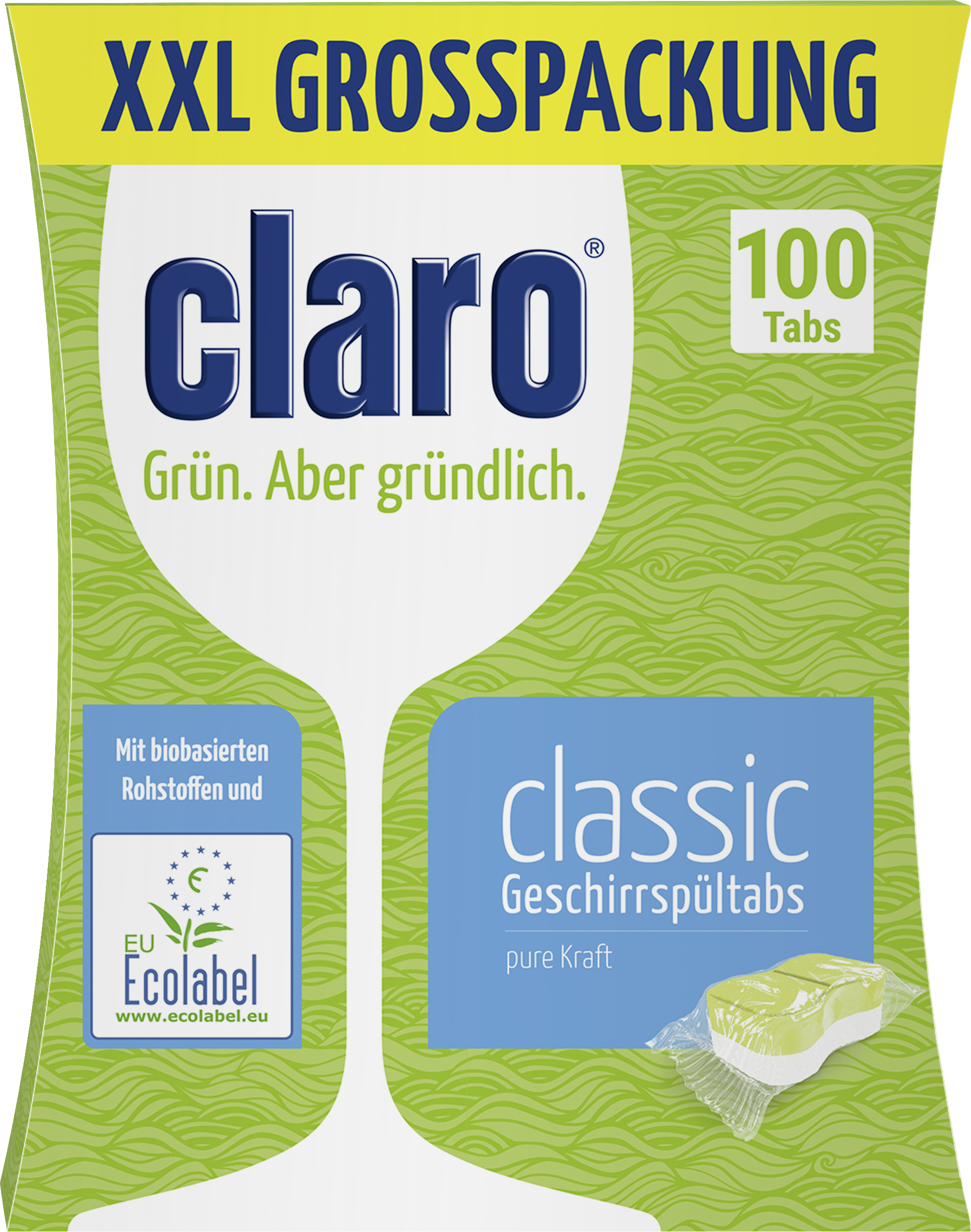 Mit den claro ÖKO Classic Tabs liegst du immer goldrichtig. Ein Tab pro Spülgang reicht aus, um deinem Geschirr wieder strahlende Sauberkeit zu schenken. Das Produkt löst sich Schicht für Schicht auf. So werden zuerst die starken Verschmutzungen und Krusten entfernt und die übrigen Stoffe entfalten Stück für Stück ihren Effekt. Diese Power wird belohnt: und zwar mit dem österreichischen Umweltzeichen und dem EU-Ecolabel.