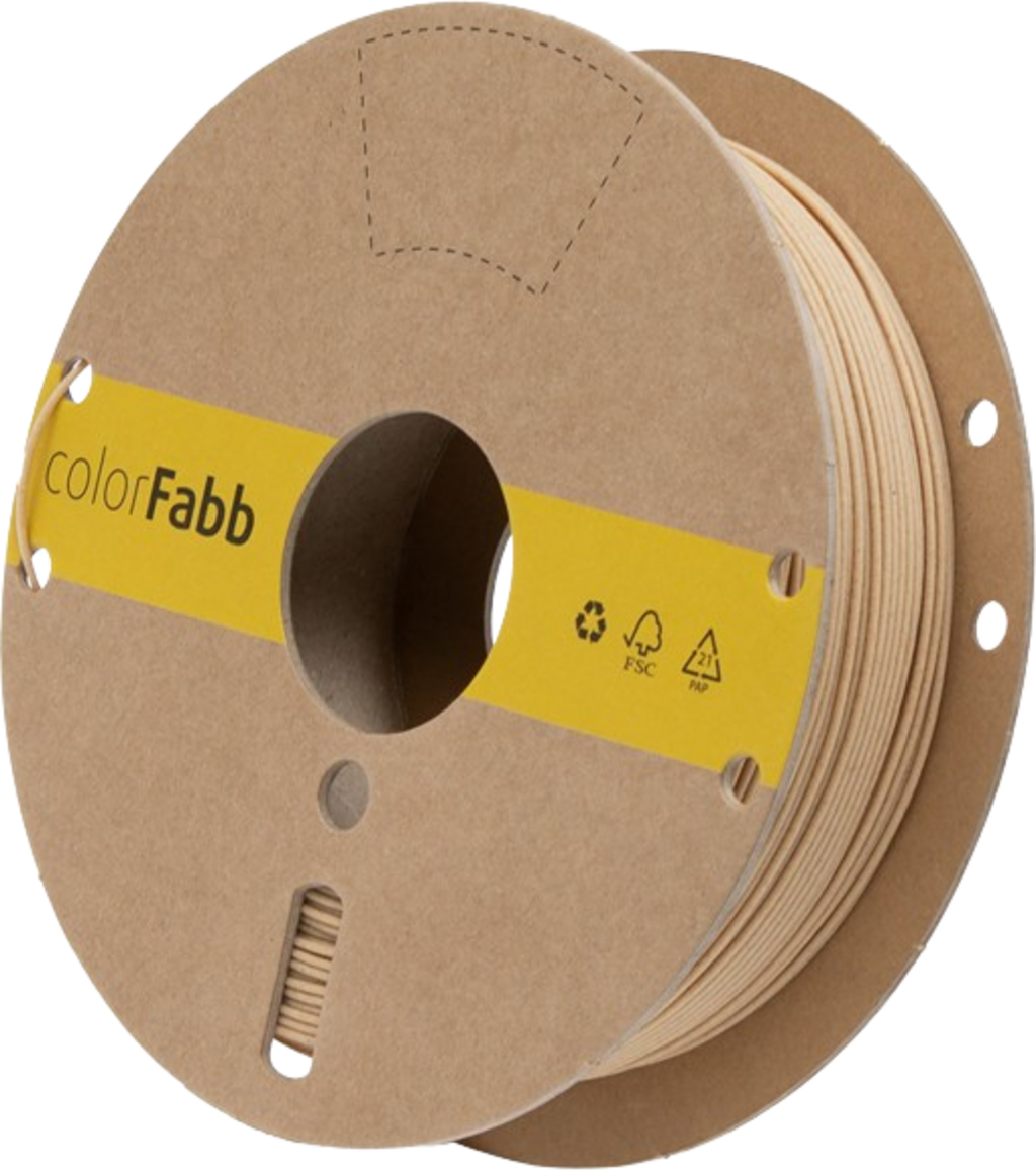 Etwa 70% colorFabb PLA/PHA und 30% recycelte Holzfasern befinden sich im Filament.