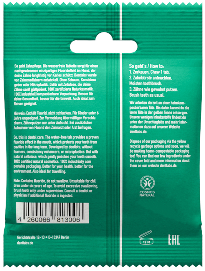 Erfahrungsberichte in Deutsch für denttabs. Zahnputztabletten Stevia-Mint mit Fluorid