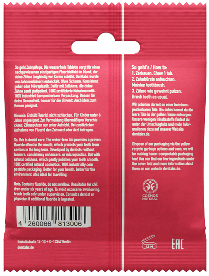 Erfahrungsberichte in Deutsch für denttabs. Zahnputztabletten Strawberry fluoridfrei