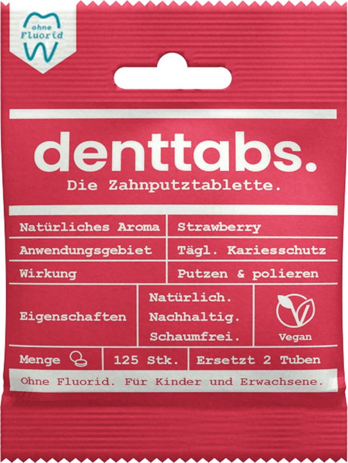 denttabs. Zahnputztabletten Strawberry fluoridfrei, 125 Stk
