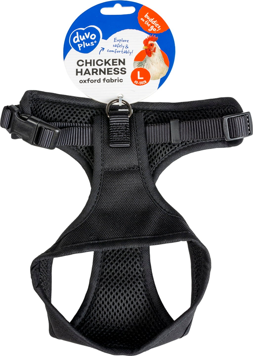 Das Hühnergeschirr Schwarz von duvoplus ermöglicht eine einfache Erziehung zum Spazierengehen! Das praktische Geschirr ist aus einem atmungsaktiven Oxfordgewebe gefertigt, sodass es für deine Hühner keine unbequemen Umstände verursacht. Das Geschirr kann ganz einfach übergezogen und abgenommen werden: Ein Druckverschluss aus robustem Plastik erleichtert sein Verschließen.