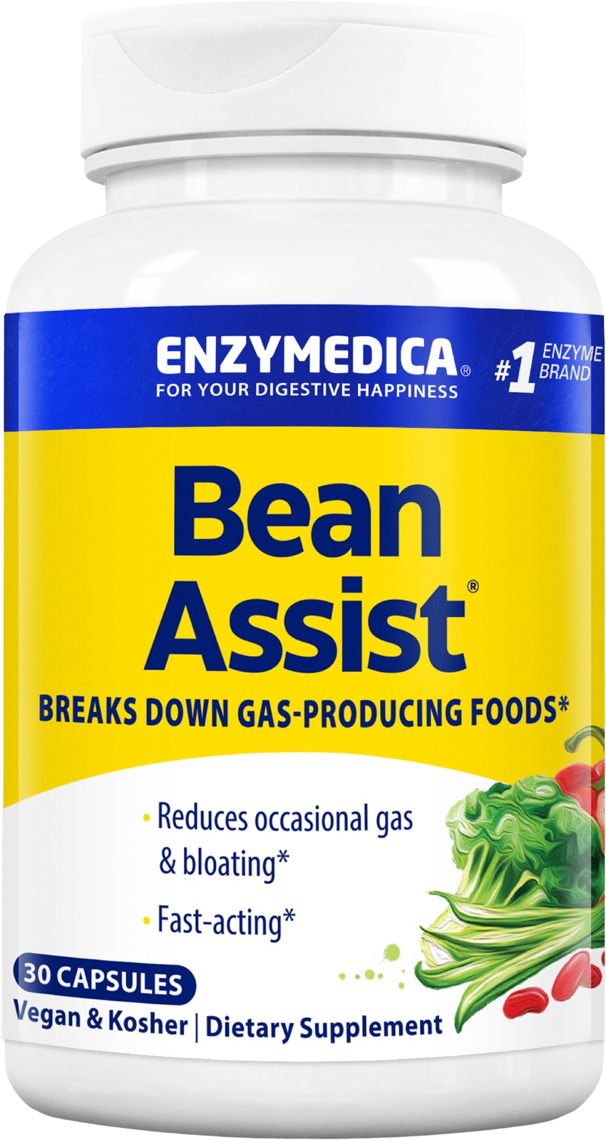 Enzymedica BeanAssist® bietet eine gezielte Lösung für die Einbindung von ballaststoffreichen Lebensmitteln in deinen Ernährungsplan. Hülsenfrüchte, Kohlgemüse und Vollkornprodukte enthalten komplexe Kohlenhydrate und Polysaccharide, deren Aufspaltung im Verdauungstrakt eine Herausforderung darstellen kann. Dieses Supplement setzt auf das spezialisierte Enzym Alpha-Galactosidase. Dieses ist exakt darauf ausgerichtet, diese schwer verfügbaren Kohlenhydrate in einfacher strukturierte Zucker umzuwandeln. Durch diese präzise enzymatische Aktivität wird der natürliche Prozess der Verwertung von Gemüsen und Leguminosen begleitet.