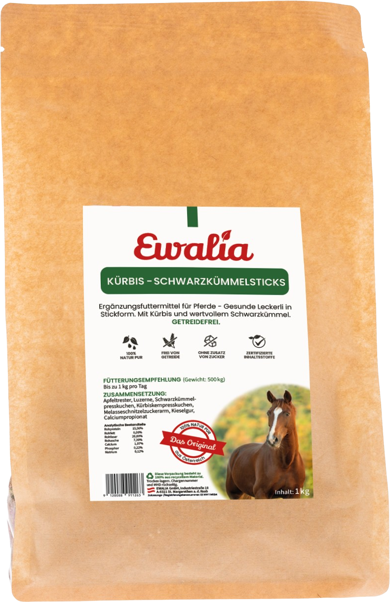 Diese schmackhaften, getreidefreien Kürbis-Schwarzkümmelsticks sind die ideale Belohnung beim Clickertraining. Mit ihrer kompakten Form lassen sie sich praktisch überall hin mitnehmen, sodass Sie auch unterwegs immer einen köstlichen Snack für Ihr Pferd zur Hand haben.