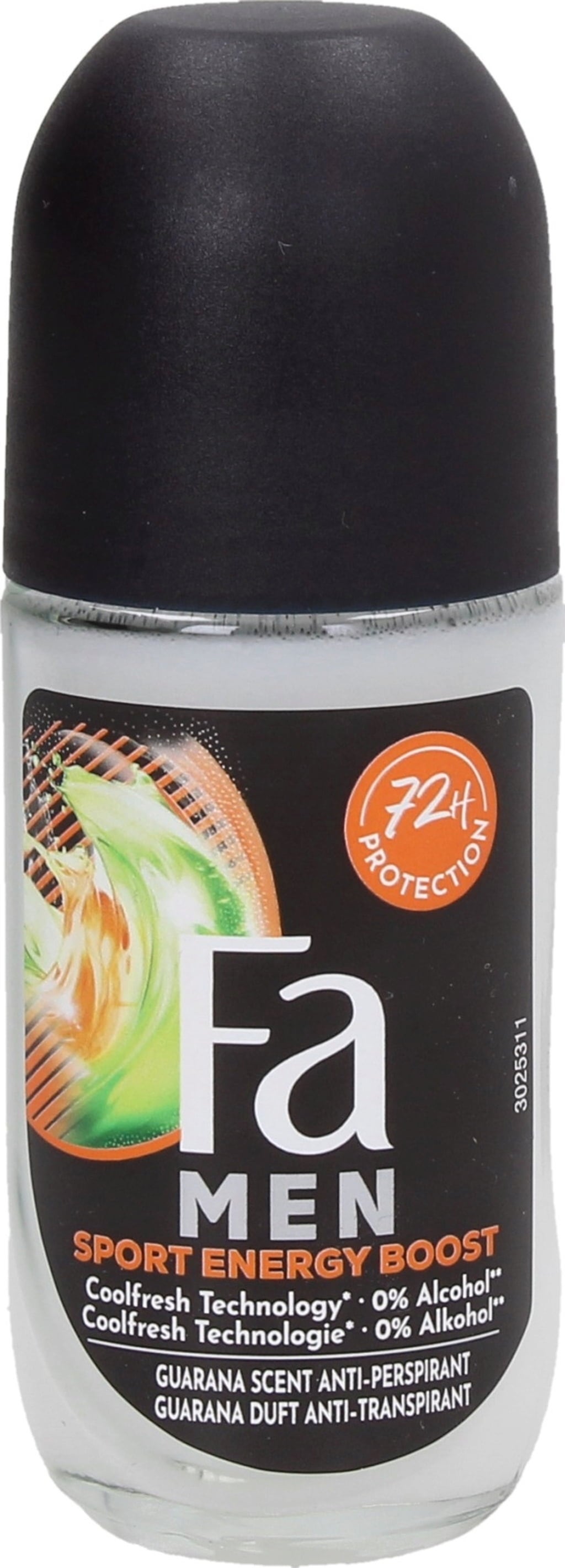 Zuverlässiger und langanhaltender Deo-Schutz von Fa Men - das Sport Energy Boost Deo Roll-On schützt vor, während und nach dem Sport mit erfrischendem Duft. Das Anti-Transpirant bietet effektiven Schutz gegen Schweiß und Körpergeruch für bis zu 72 Stunden lang.