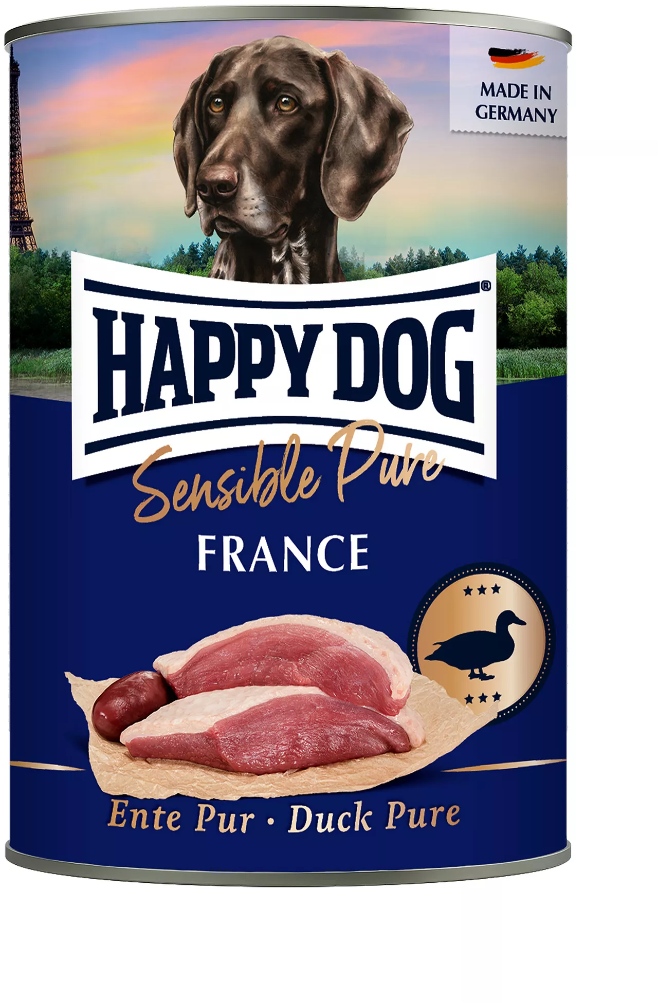 Das Happy Dog Sensible Pure France ist ein unglaublich genüssliches Nassfutter für ernährungssensible Fellnasen mit Futtermittelunverträglichkeiten. Die soja- und glutenfrei Rezeptur aus zartem Entenfleisch und Innereien sorgt für besonders abwechslungsreiche Genussmomente. Dabei unterstützen wertvolle Vitamine und Mineralstoffe ein harmonisches Hundeleben! 100 % tierisches Protein von der Ente, ohne pflanzliche Zusätze, Aroma- und Farbstoffe.