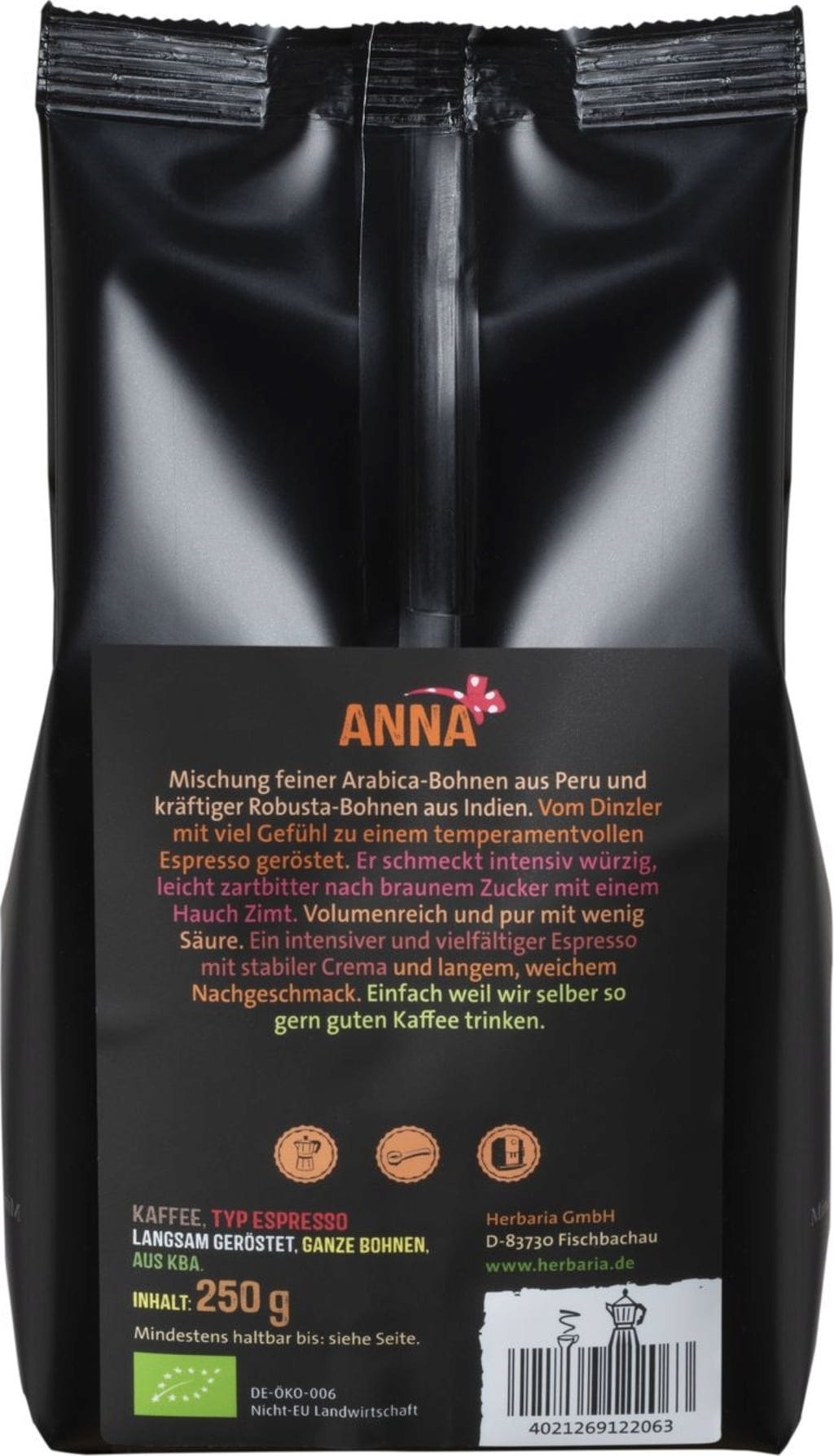 Herbaria Bio Espresso "Anna" ganze Bohne, ganze Bohne bio, 250 g