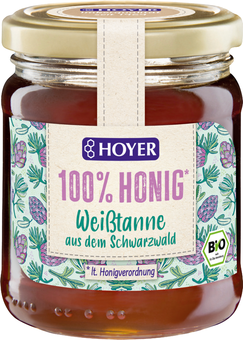 Der Weisstannenhonig unterscheidet sich in einem Punkt gravierend von anderen Honigsorten: die Bienen (aus streng biologischer Bienenhaltung) sammeln für diese Spezialität keinen Nektar. Stattdessen entsteht dieser Honig aus den Honigtautropfen, die sich auf den Tannennadeln bilden. Für die Ernte schwärmen die Bienenvölker dazu in den Schwarzwald aus. Neben dem kräftigen, würzigen Geschmack und der dunklen Farbe zeichnet diesen Honig auch aus, dass er nicht dazu neigt, schnell zu kristallisieren.