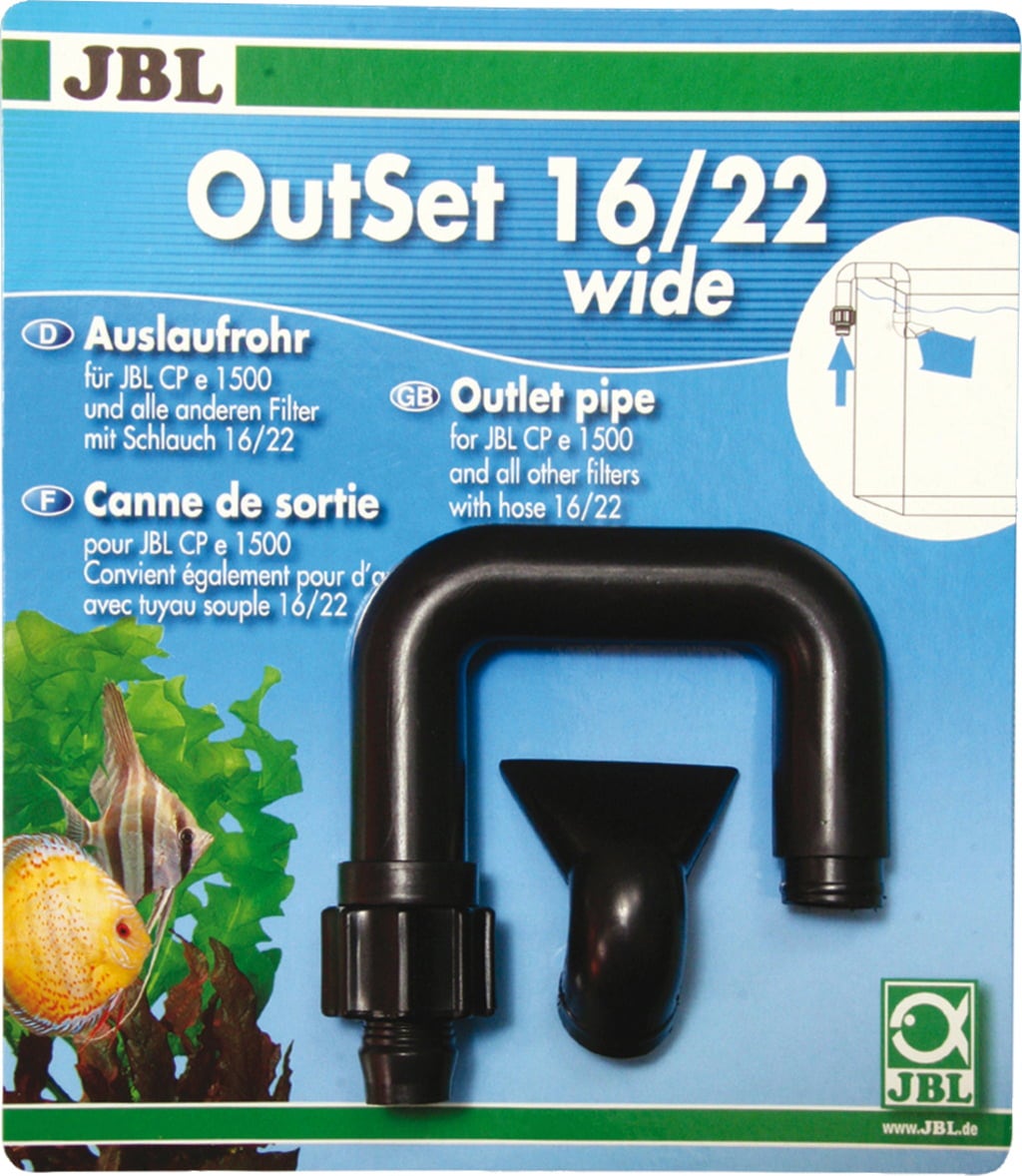 Das Auslaufset wird am Schlauch des Außenfilters (nicht im Lieferumfang enthalten) angeschlossen, das Breitstrahlrohr wird im Aquarium platziert. Die ideale Wasserrückführung verhindert weniger CO2-Verlust dank des Breitstrahlrohrs, die Installation ist praktisch durch das eckige Winkelrohr- Winkel: 59mm. Die Befestigung ist dank der Schlauchverschraubungen sehr sicher. Die Installation des JBL OutSet wide kann auch in bepflanzten Aquarien durchgeführt werden.