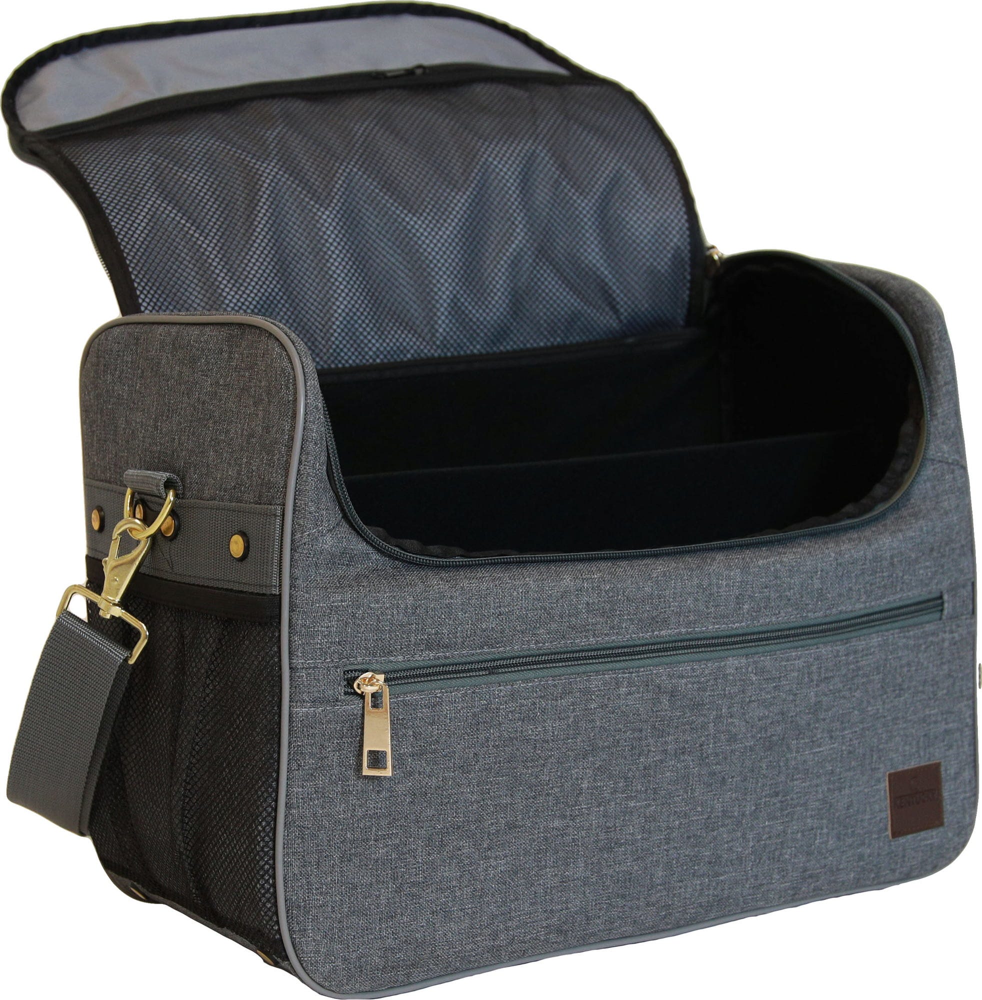 Diese Putztasche hat ein widerstandsfähiges Außenmaterial. Mit Fach für kleine Gegenstände und großes Fach für Mähnengummis, Nadeln und Fäden. Netztaschen an beiden Seiten. Dank Klettverschlüssen kann das Innere je nach belieben organisiert werden. Der Riemen mit Schulterpolster kann abgenommen werden. Mit Füßen am Boden.