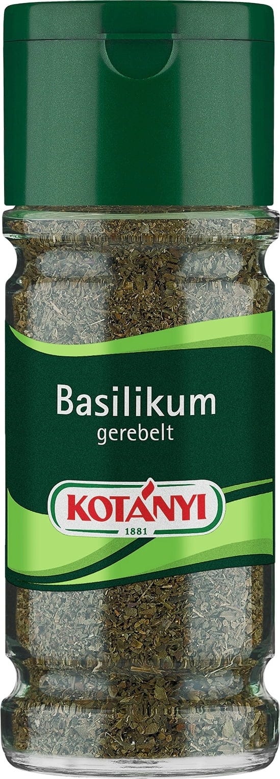 Basilikum mit dem Aroma von Nelken, Pfeffer und Minze ist in der Mittelmeerküche unerlässlich. Besonders schonend getrocknet, bleibt Kotányi Basilikum reich an ätherischen Ölen, die sich beim Zubereiten von Speisen wie frisch entfalten.