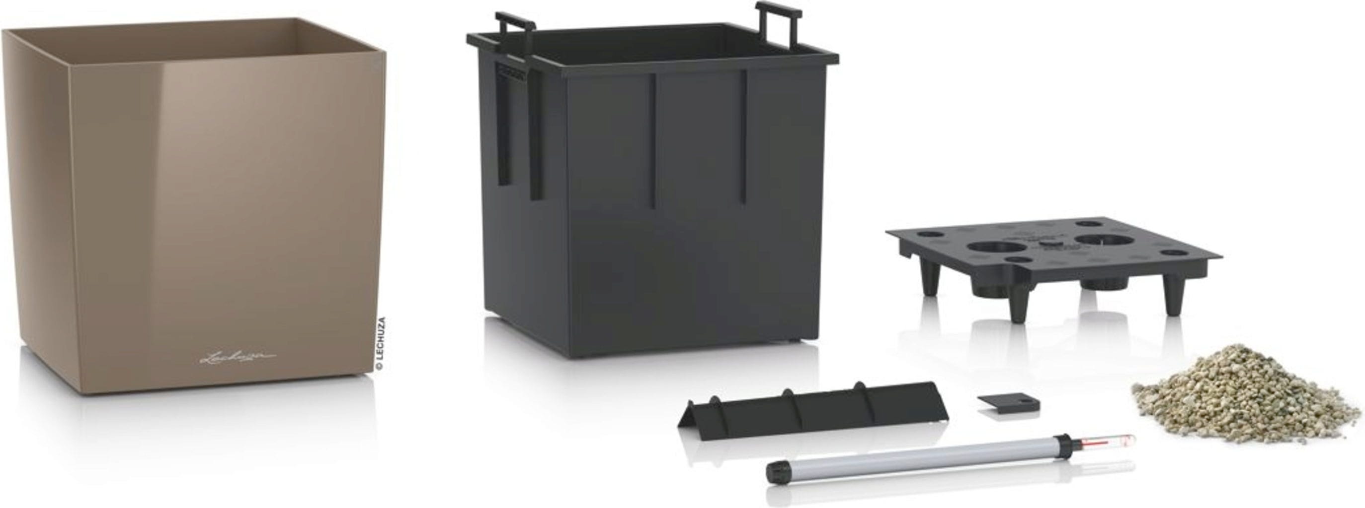 Lechuza Pflanzgefäß CUBE Premium 40, Taupe Hochglanz