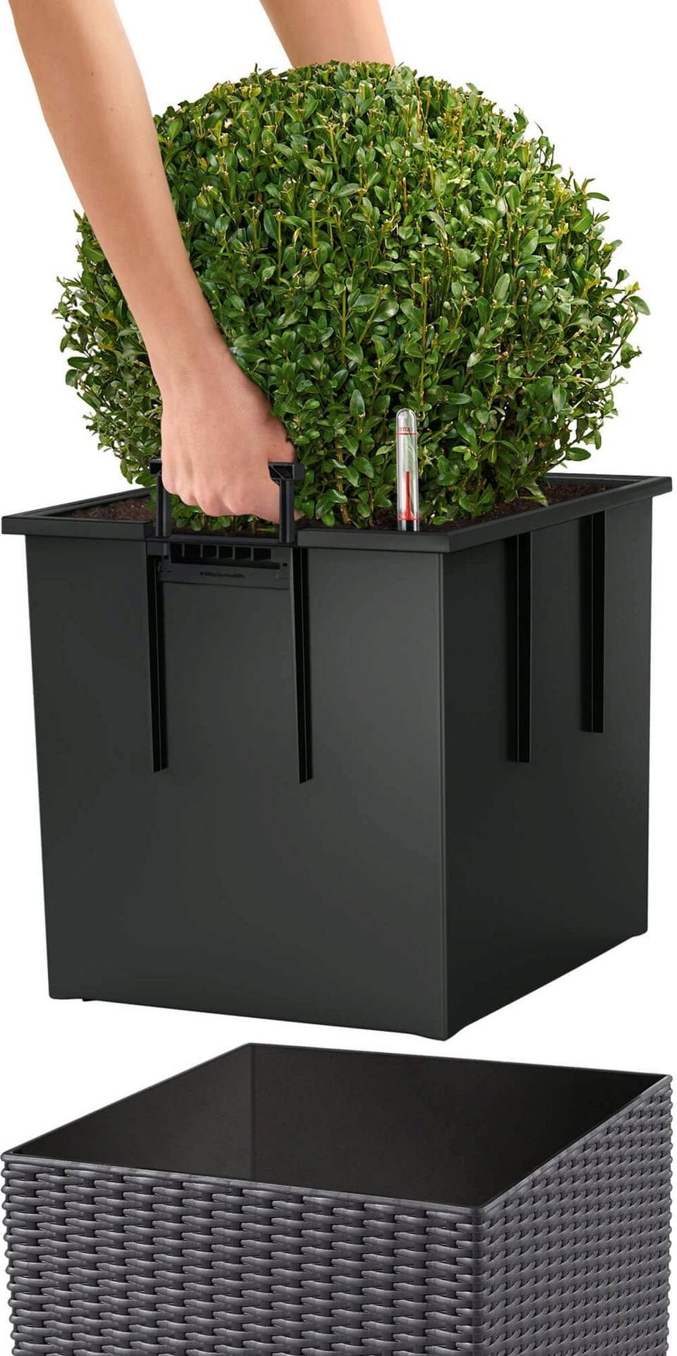 Das Pflanzgefäß CUBE Cottage 50 wird inklusive Pflanzeinsatz sowie Bewässerungsset geliefert. Somit können Sie das Pflanzgefäß spielend leicht bepflanzen und ein schnelles Ein- und Auswechseln der Bepflanzung sowie ein Überwintern wird vereinfacht.