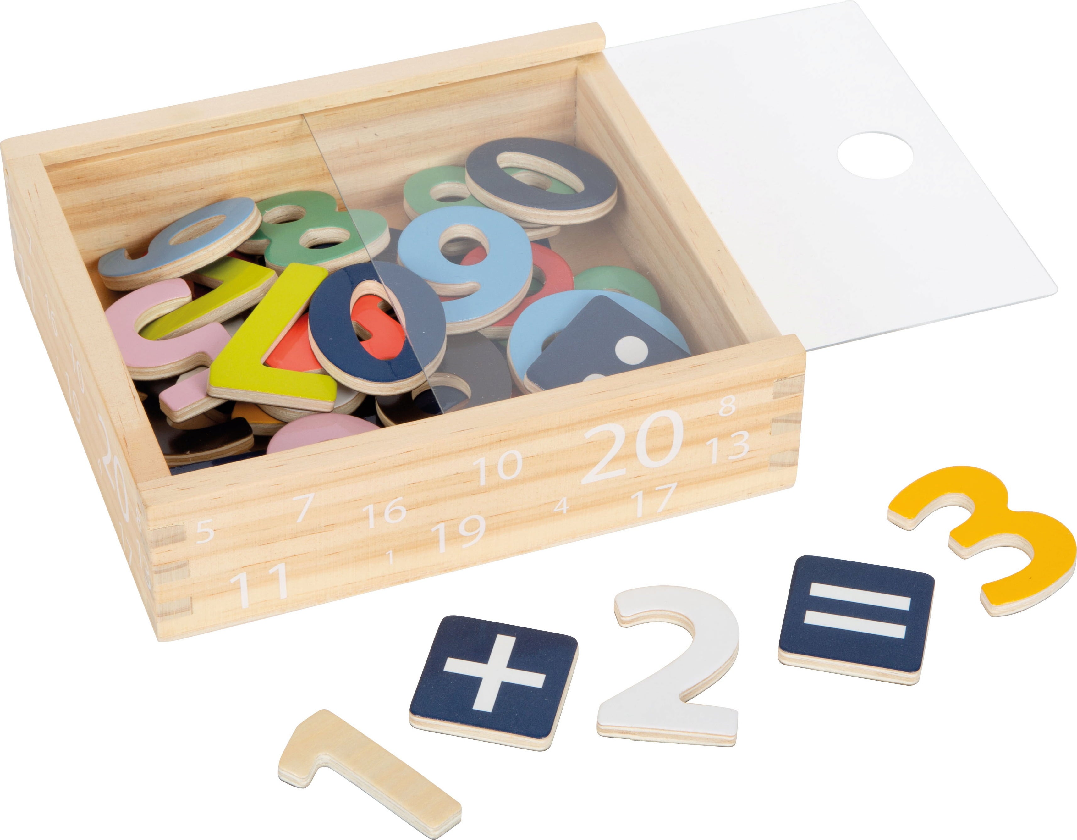 Mit dem passenden Spielzeug macht Rechnen richtig Spaß! Diese tolle Holzbox enthält 40 Ziffern und Rechenzeichen, die zum Üben, Tüfteln und Rätseln einladen. Alle Zahlen lassen sich an magnetischen Untergründen anbringen, weshalb sie auch auf Schultafeln eine ausgezeichnete Figur machen.