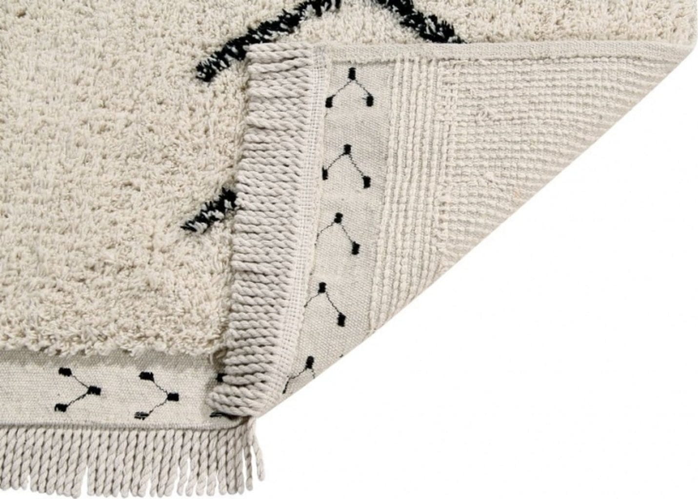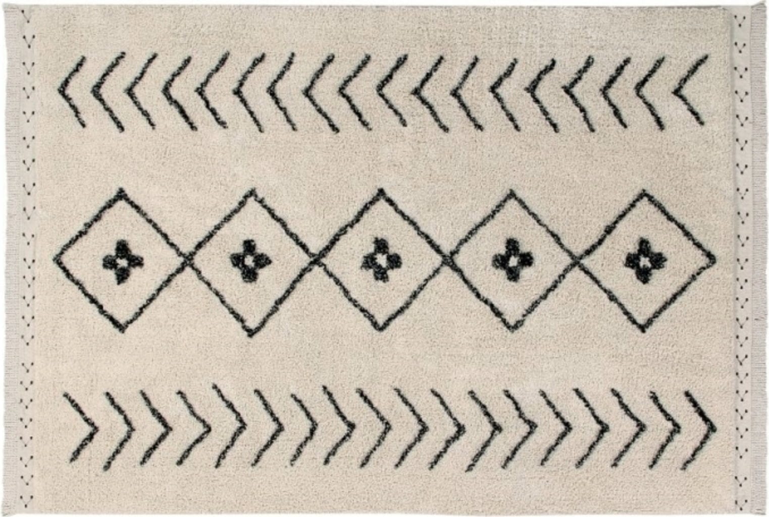 Dieser wunderschöne, aufwendig von Hand gefertigte Teppich im Berber-Stil ist gleichermaßen elegant wie vielseitig und begeistert mit seinem zeitlosen Design. Das schwarze Muster auf beigem Untergrund sorgt für die unvergleichliche Optik dieses außergewöhnlichen Teppichs aus reiner Baumwolle. So passt er in Schlaf- und Wohnzimmer genauso gut wie in Esszimmer und setzt auch auf Terrassen einen einzigartigen Akzent.