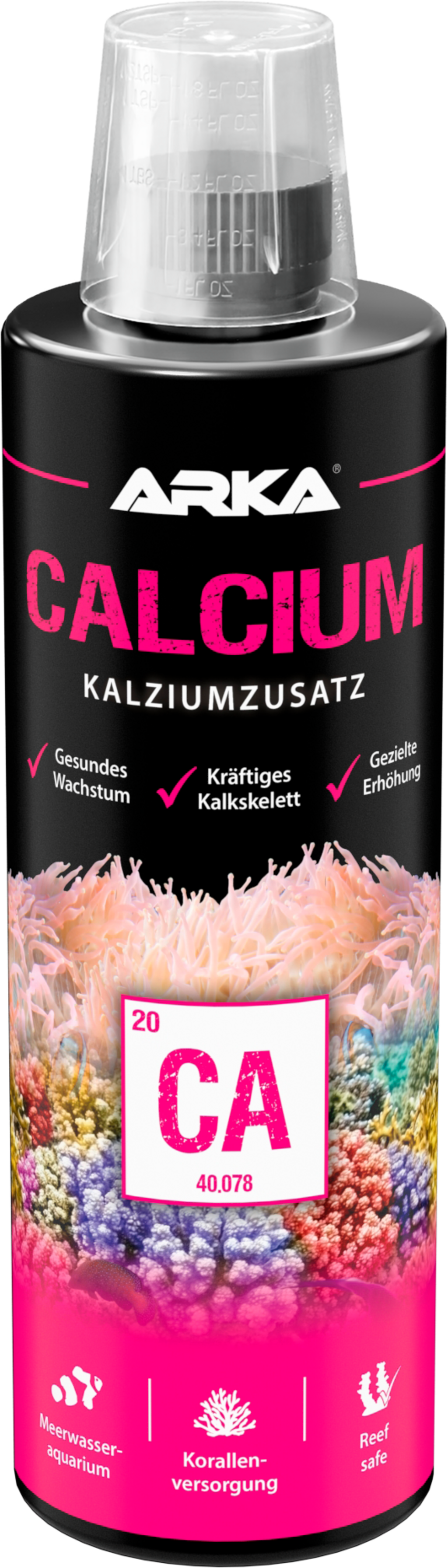 Dosierungshinweis: 5 ml auf 100 Liter Wasser geben, um den Kalziumgehalt um 5,0 mg/L zu erhöhen. (In dicht besetzen Meerwasser-Aquarien kann die Dosierung täglich erfolgen)