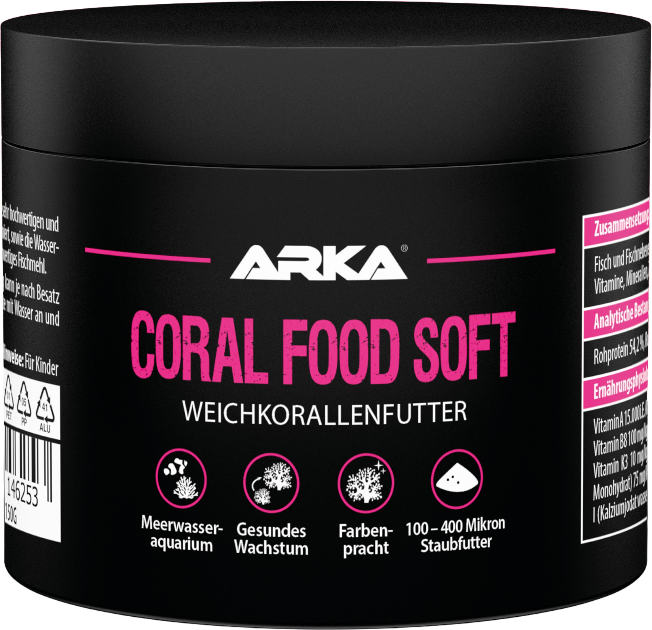 Coral Food Soft ist ein kaltgepresstes Staubfutter zur optimalen Ernährung deiner Weichkorallen. Durch die sehr hochwertigen und speziell aufeinander abgestimmten Inhaltsstoffe wird die natürliche Farbgebung und das Wachstum optimiert, sowie die Wasserbelastung auf ein Minimum reduziert. Coral Food Soft enthält keine Spirulina (Cyanobakterien) und minderwertiges Fischmehl.