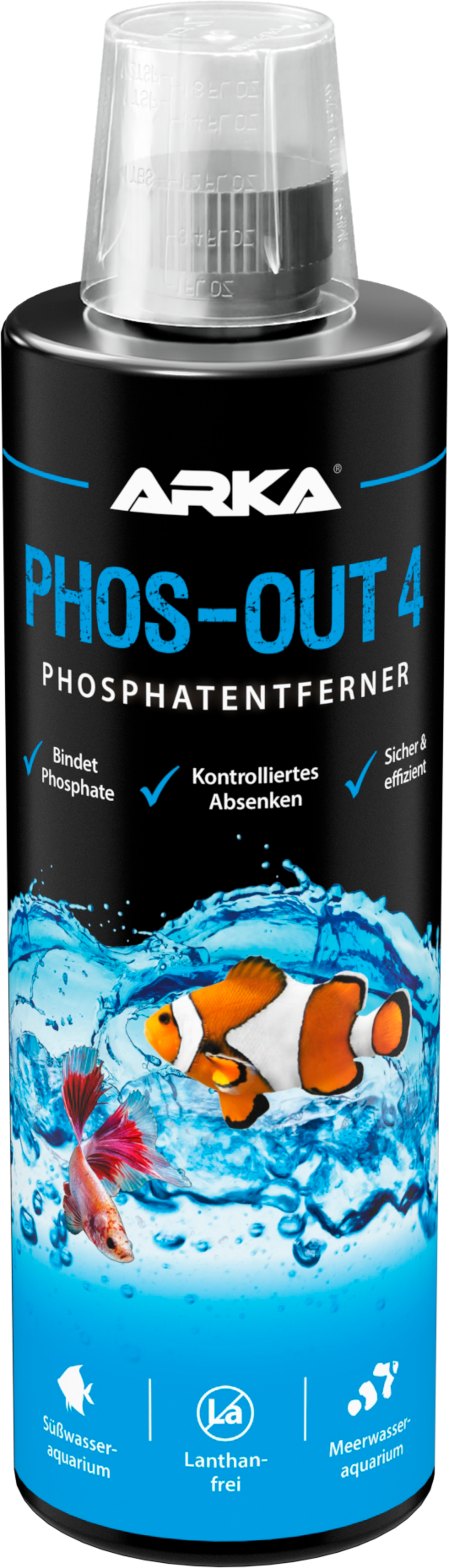 - Süßwasser-Aquarium: max. 4 ml auf 100 Liter Wasser, bis der gewünschte PO4-Wert erreicht ist.