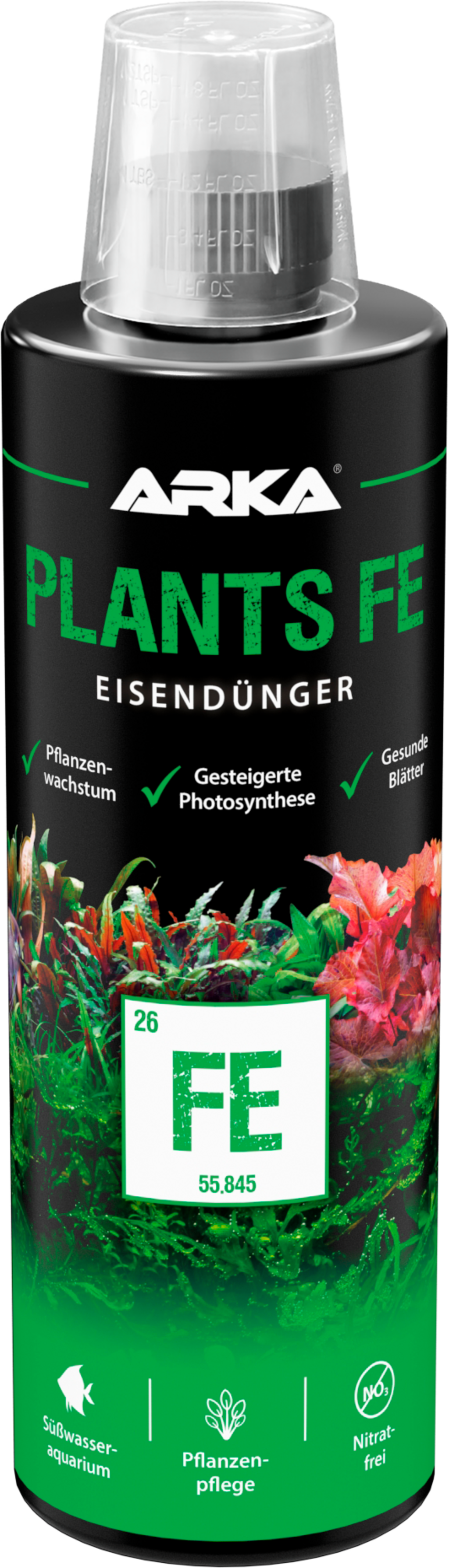 • Gib 1 ml Plants Fe auf 100 l Wasser, um den Eisengehalt um 0,1 mg/l zu erhöhen.