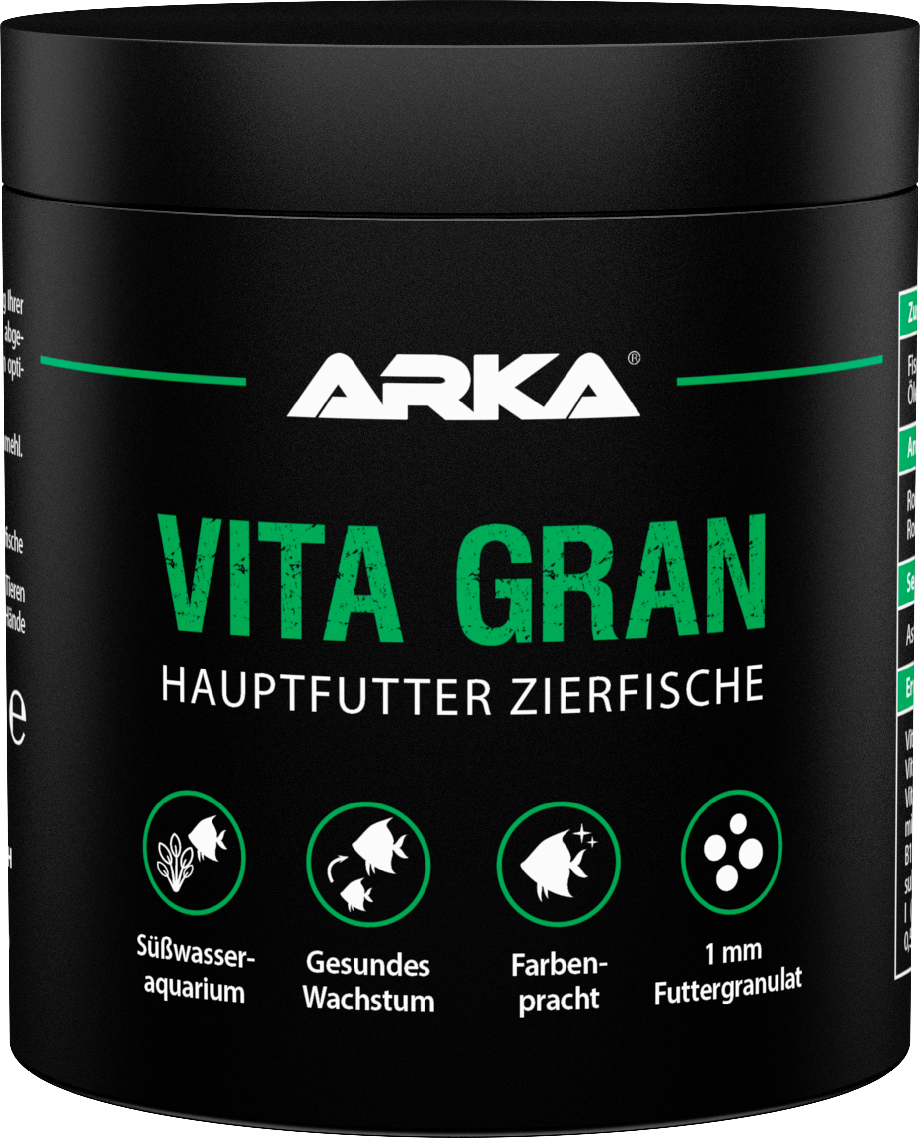 Als Hauptfutter für Zierfische in Süßwasser-Aquarien kombiniert VitaGran hochwertigste Inhaltsstoffe und unterstützt so ein gesundes Wachstum, die natürliche Farbgebung und reduziert Ausscheidungen auf ein Minimum. Hergestellt in einem vitaminschonenden Kaltpressverfahren. Verzichtet auf Spirulina (Cyanobakterien) und minderwertiges Fischmehl.