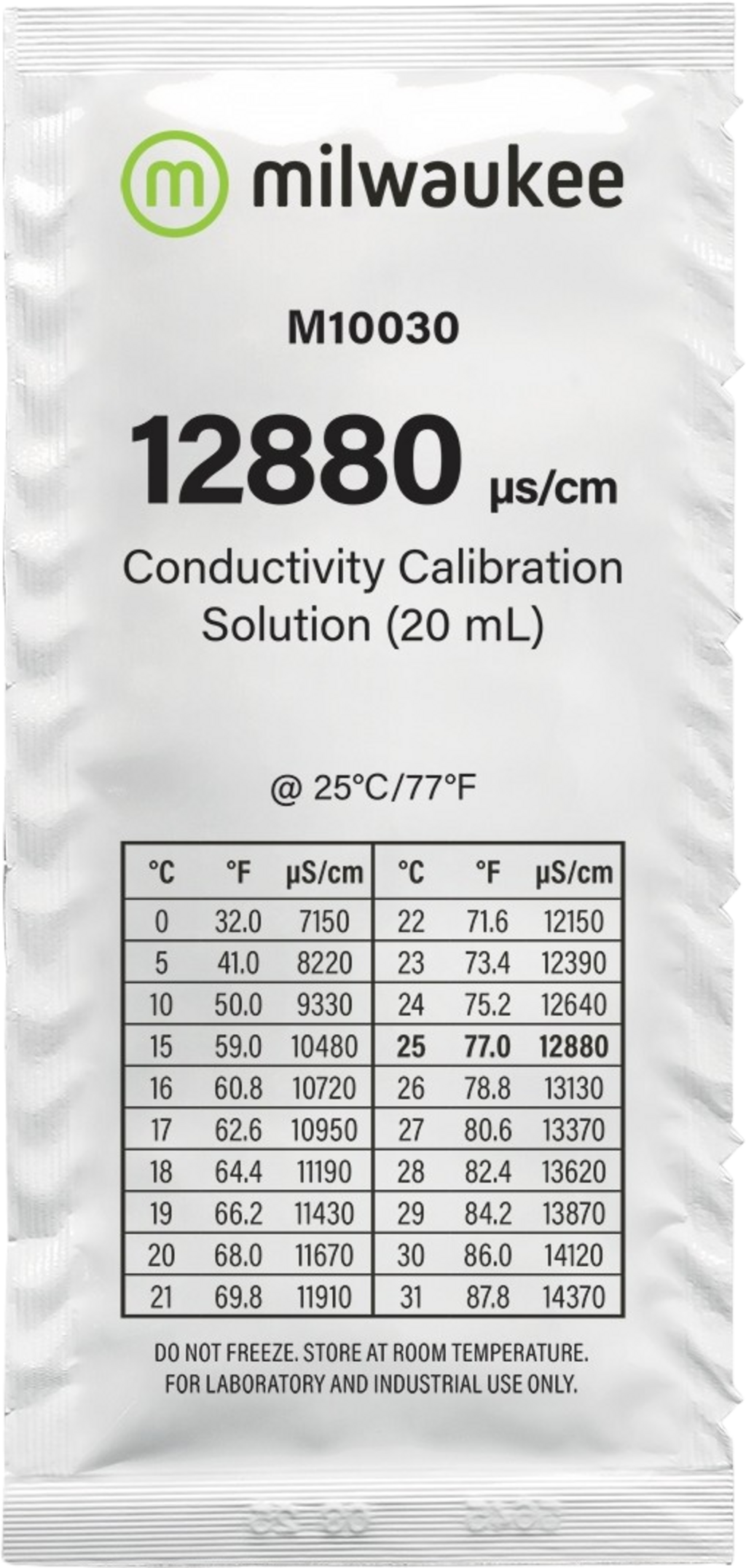 Dadurch, dass die Leitfähigkeitsmesswerte von der Temperatur beeinflusst werden, befindet sich auf jedem Sachet eine Tabelle mit dem tatsächlichen ms/cm-Wert bei verschiedenen Temperaturen. Ganz praktisch!