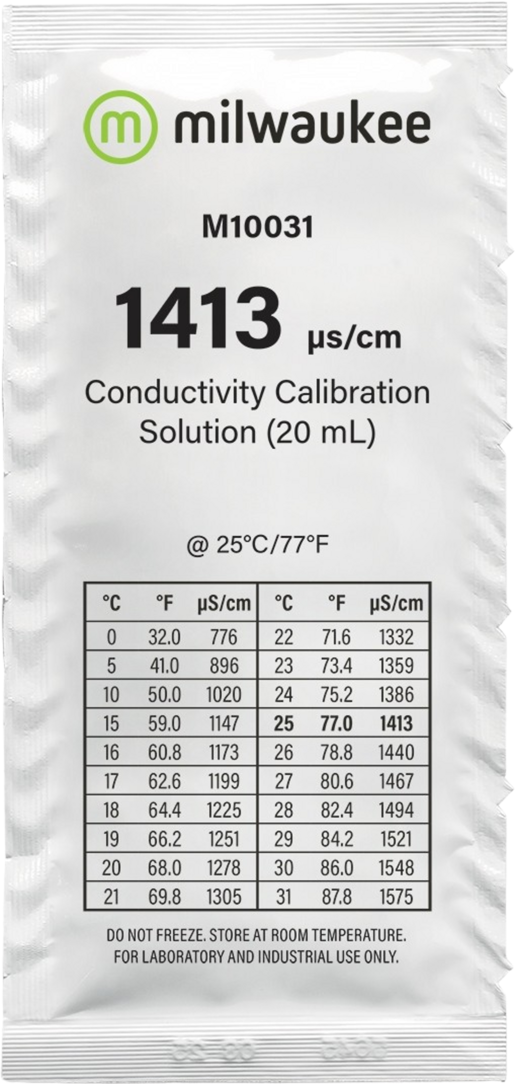 Bei M10031B handelt es sich um einen 1413 ms/cm Leitfätigkeitsstandard in Laborqualität, der gegen eine NIST-rückführbare Kaliumchloridlösung (2202 SRM) kalibriert wurde. Mit der Lösung kannst du deine Mess- und Prüfgeräte für die Leitfähigkeit neu kalibrieren!