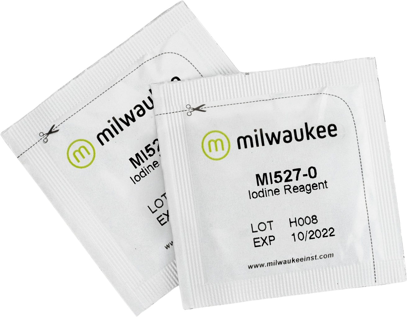 Das MI527-25 Jodpulver-Reagenz besteht aus qualitativ hochwertigen Reagenzien für den MW13 Iodin Photometer von Milwaukee. Sowohl das Reagenz als auch das Messgerät verwenden die Adaption der DPD-Methode Standard Methods for the Examination of Water and Wastewater 18th edition. Dabei verursacht die Reaktion zwischen Jod und dem Reagenz die Färbung der Probe in Rosa. Dafür ist das Reagenz in die Probe zu geben und die Reaktion abzuwarten. Anhand der Farbe bestimmt dann der Photometer die Konzentration des Jods für den Messbereich 0,0-12,5 ppm (mg/l).