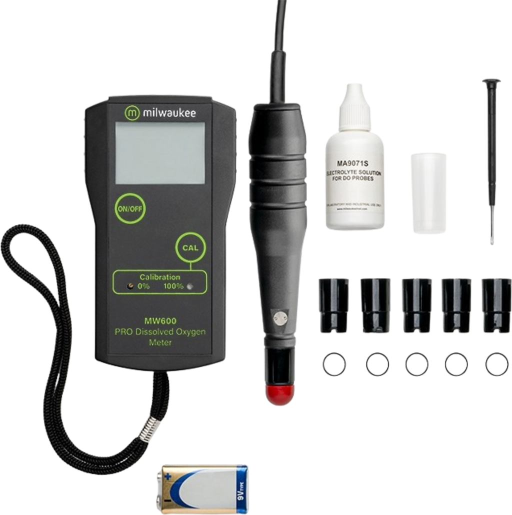 Das MW600 Pro Sauerstoff Messgerät von Milwaukee ist ein tragbares Gerät in Laborqualität für die zuverlässige Messung des gelösten Sauerstoffs mit einer Genauigkeit von ± 1,5 % FS und einer automatischen Temperaturkompensation (0-30 °C). Das Messgerät enthält die MA840 Polarografischen Sonde mit einem sauerstoffdurchlässigen Polytetrafluroethylen (PTFE)-Membransensor - 5 O-Ringe, 5 Membranen und eine Schutzkappe sind in den Lieferumfang inkludiert.