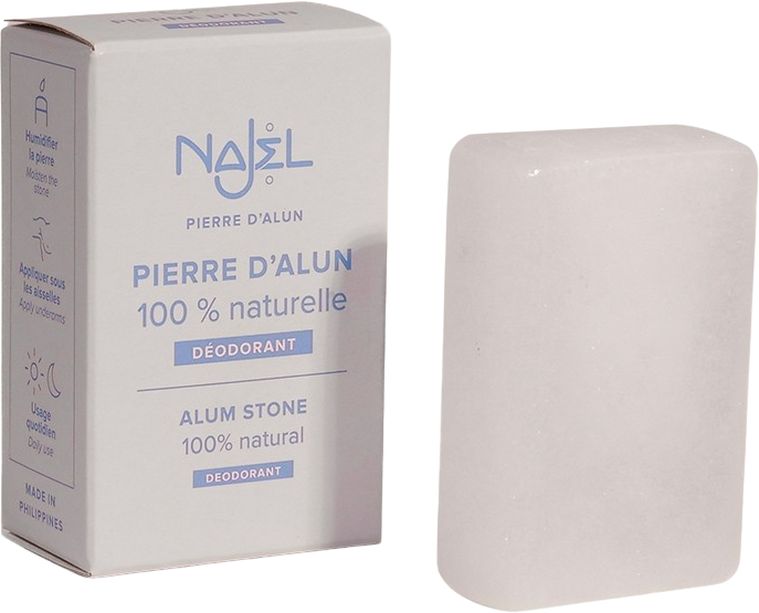 Alaun ist aufgrund seiner adstringierenden und bakterienhemmenden Eigenschaften besonders gut als Deodorant geeignet: er verhindert damit unangenehmen Schweißgeruch. Überdies ist er hypoallergen, unparfümiert und hinterlässt keine Flecken auf der Kleidung.