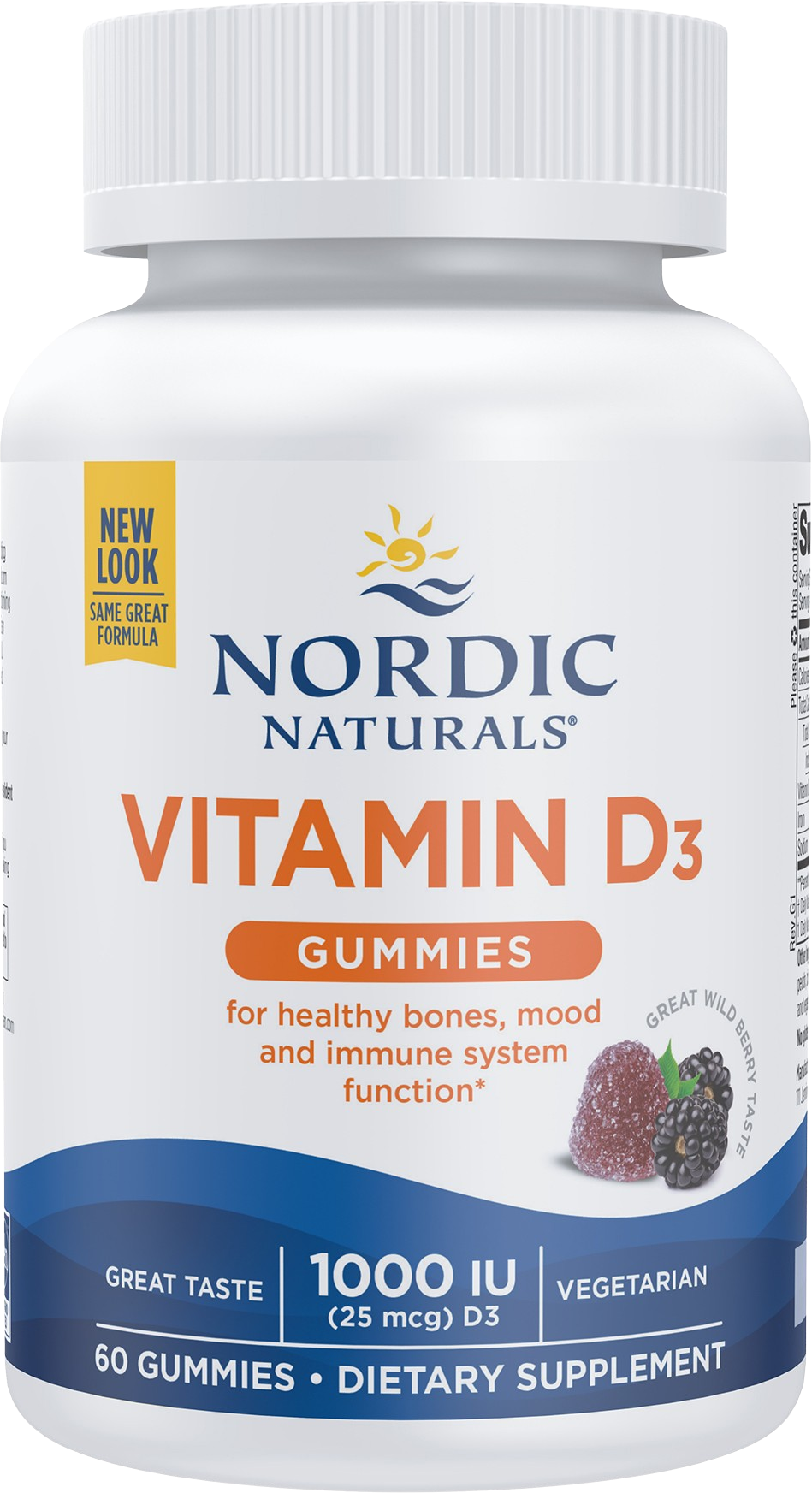 Entdecke die leckere Art, deinen Vitamin‑D‑Spiegel zu decken: Die Vitamin D3 Gummies von Nordic Naturals kommen im wilden Beeren-Geschmack und sorgen dafür, dass du deine tägliche Portion Vitamin D3 ganz ohne einfach zu dir nehmen kannst. Jede Gummibärchen liefert 1.000 IU (25 µg) Cholecalciferol, die natürliche Form von Vitamin D, die vom Körper gut aufgenommen wird.