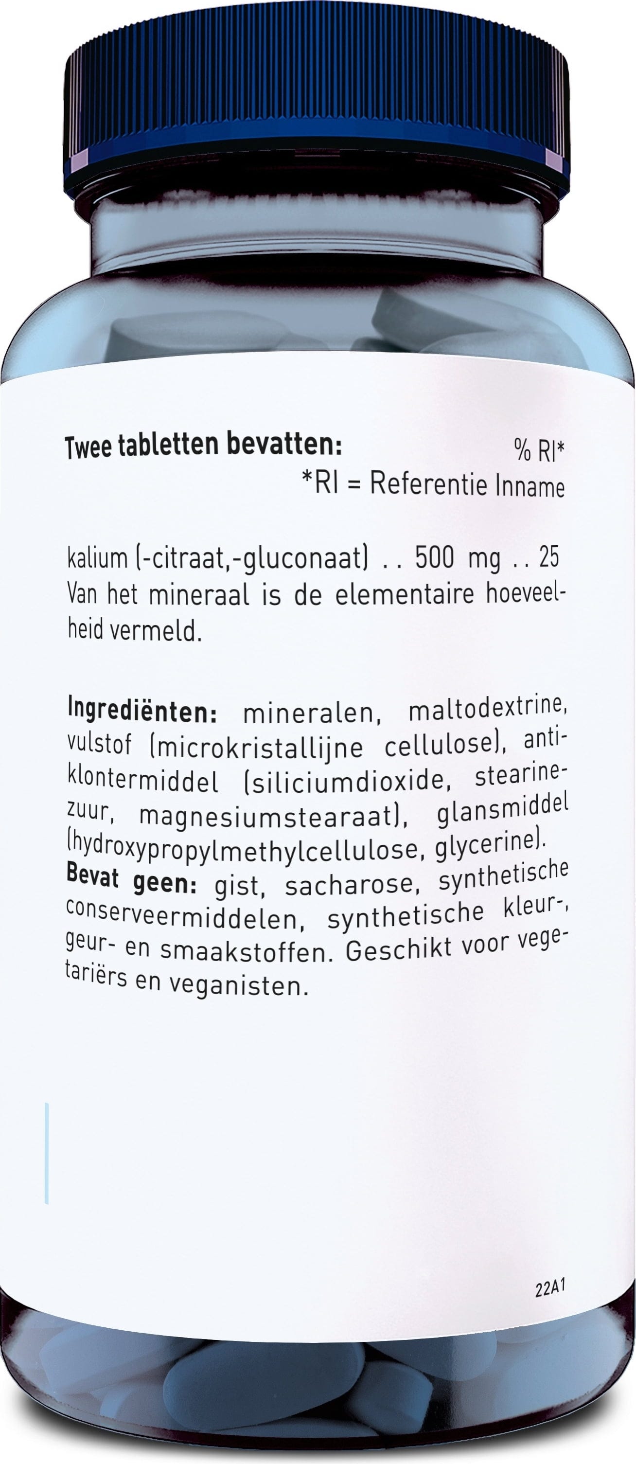 Kalium (Gluconat), Kaliumcitrat, Maltodextrin, Füllstoff (Mikrokristalline Cellulose), Trennmittel (Siliciumdioxid, Speisefettsäuren, Magnesiumsalze von Speisefettsäuren), Überzugsmittel (Hydroxypropylmethylcellulose), Feuchthaltemittel (Glycerin)