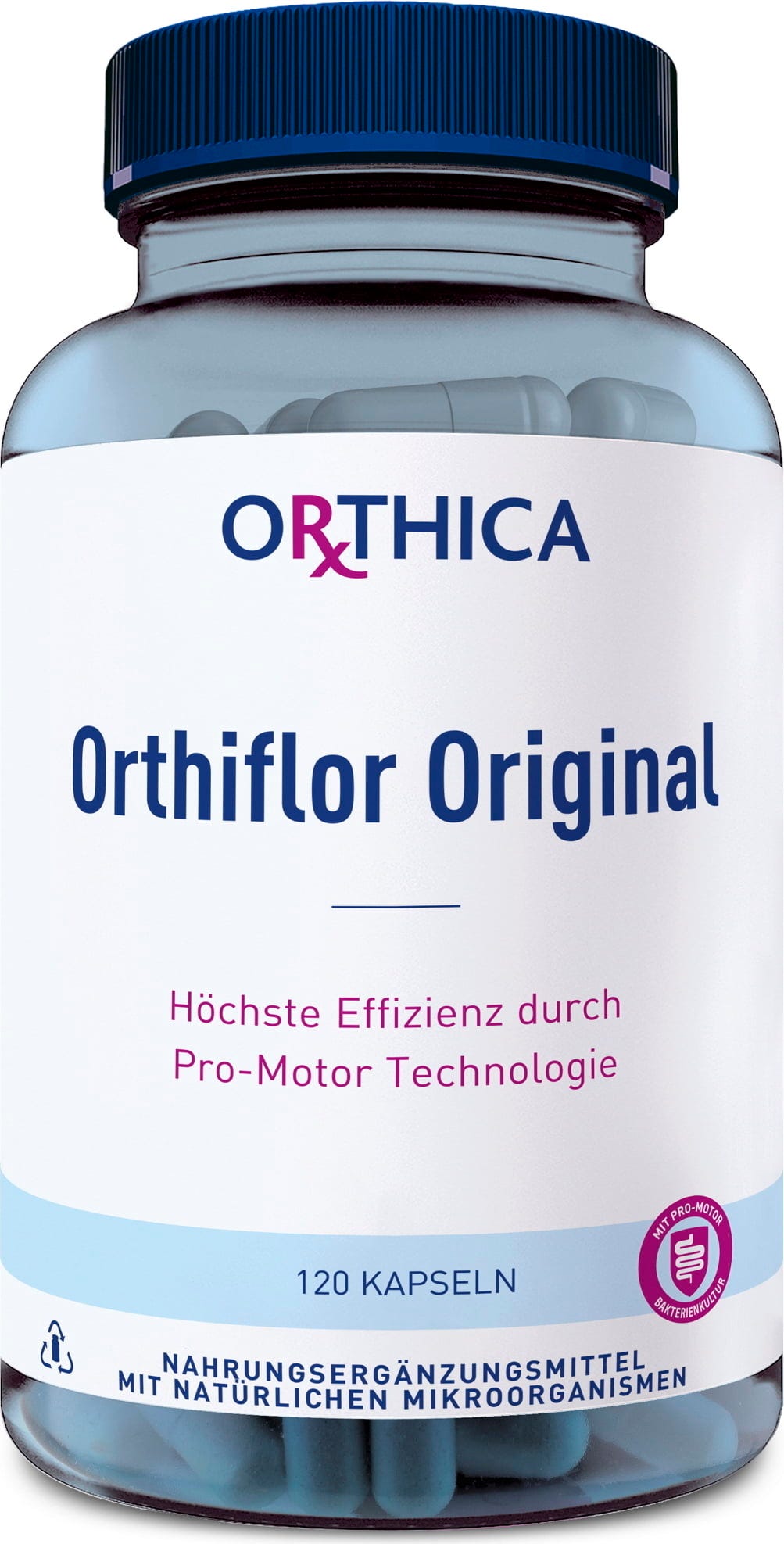 Orthiflor Original enthält sieben Milchsäure bildende Bakterienarten. Die Kapseln enthalten ein Ensemble von neun unterschiedlichen Milchsäure‑bildenden Mikroorganismen wie Bifidobacterium und Lactobacillus‑Arten, die in einer definierten Menge pro Kapsel vorliegen – dargestellt als koloniebildende Einheiten (KBE). Die Formulierung nutzt zusätzlich eine so genannte Pro‑Motor‑Technologie, die eine flexible und unkomplizierte Einnahme ermöglicht, ohne dass eine Kühlung erforderlich ist.