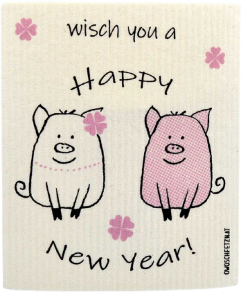 Owoschfetzn Schwammtuch "Happy New Year", Pig Ben & Friend
