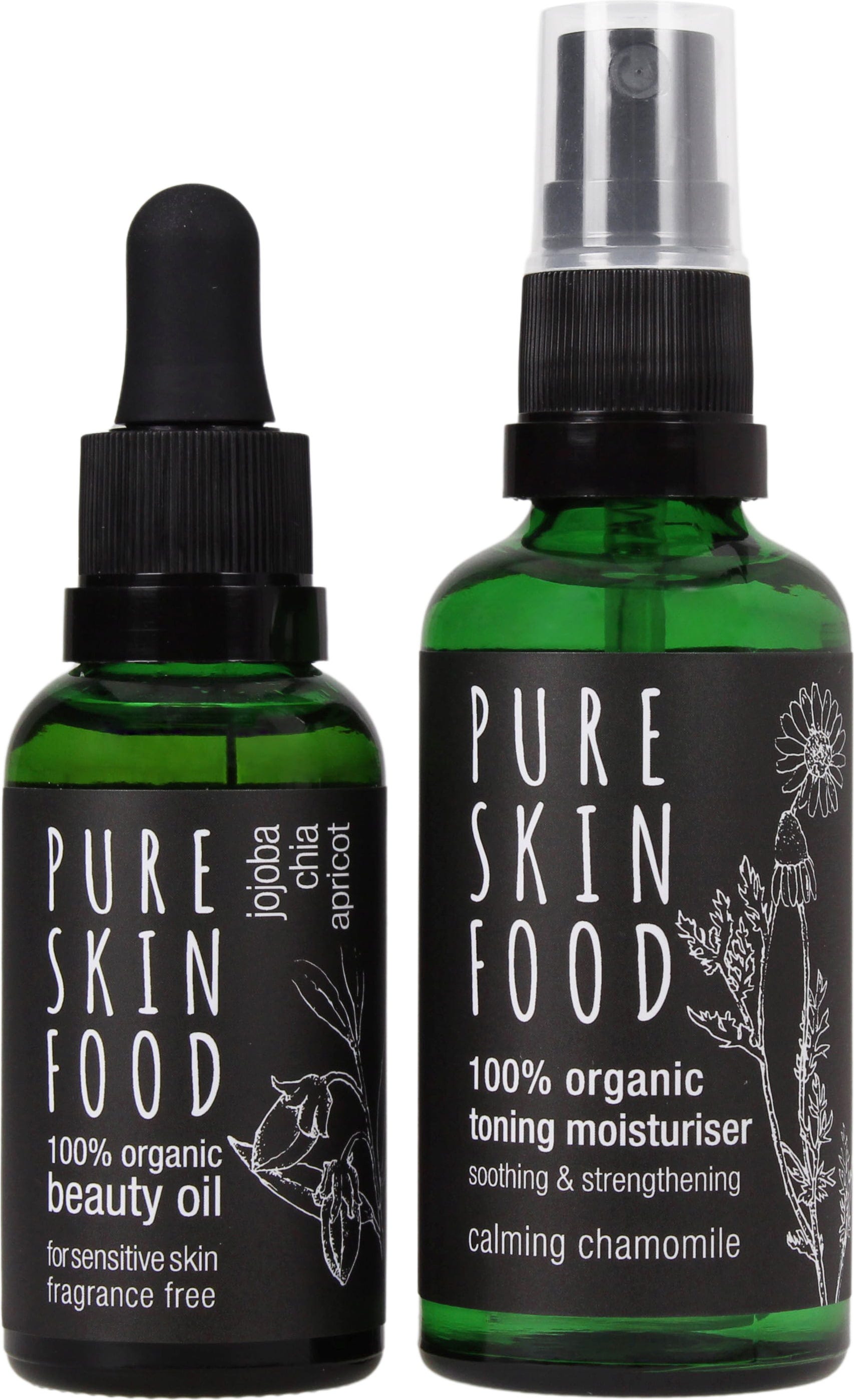 Dieses Pflegeset wurde speziell auf die Bedürfnisse sensibler Haut zugeschnitten, kann aber auch für alle anderen Hauttypen verwendet werden. Dank Kamille ist der Toning Moisturiser ein stärkender, ebnender sowie pflegender Feuchtigkeits-Boost, der vom unparfümierten Beauty Oil mit seinem aufbauenden, schützenden Effekt ergänzt wird.