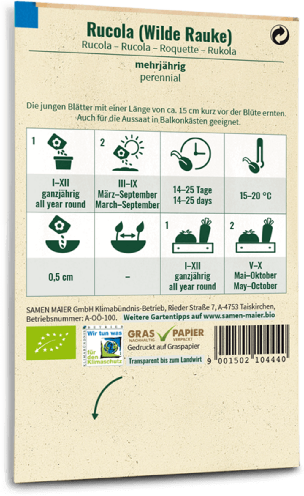Erfahrungsberichte in Deutsch für Samen Maier Bio Rucola "Wilde Rauke"