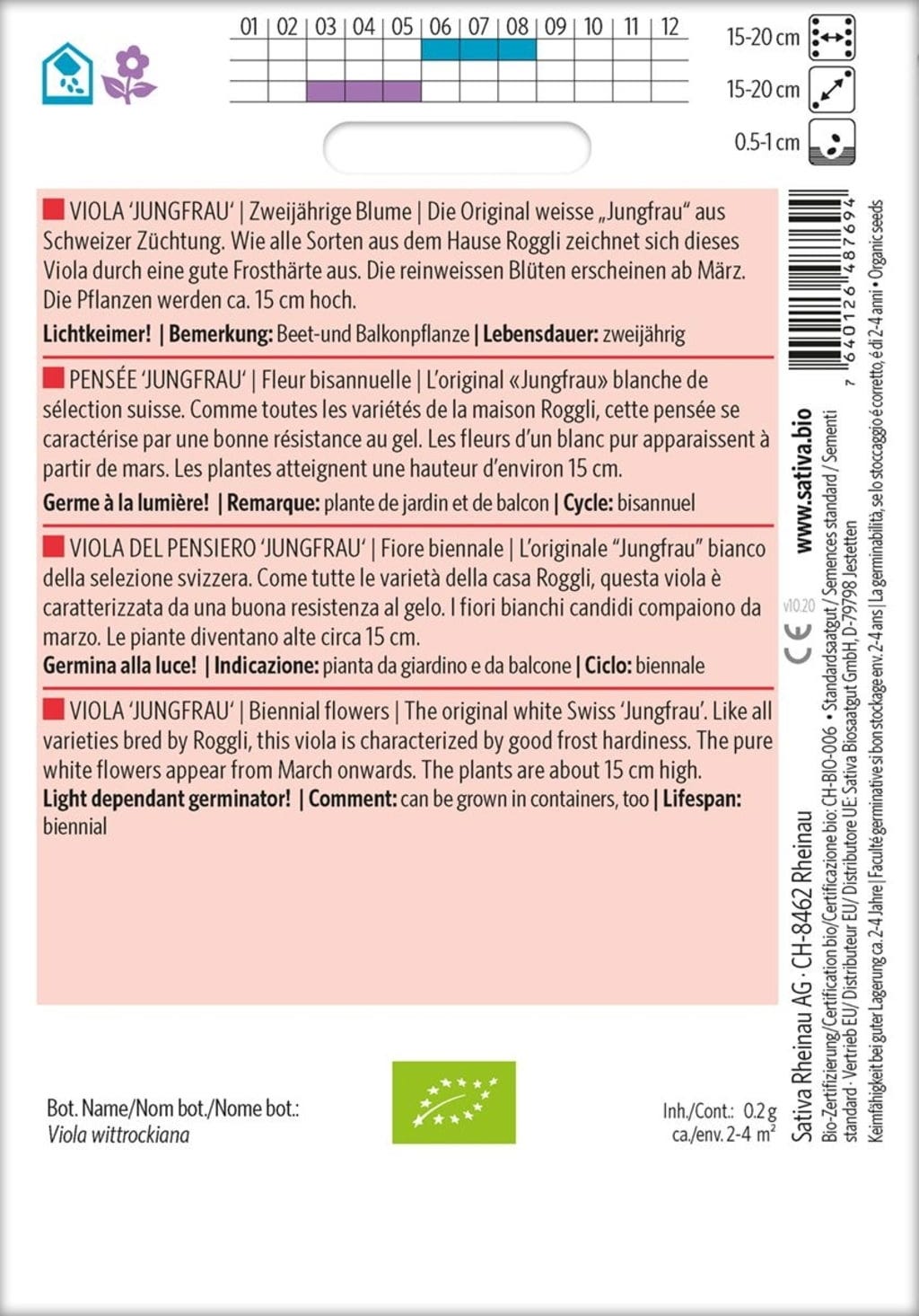 Erfahrungsberichte in Deutsch für Sativa Bio Zweijährige Blume "Viola 'Jungfrau'"