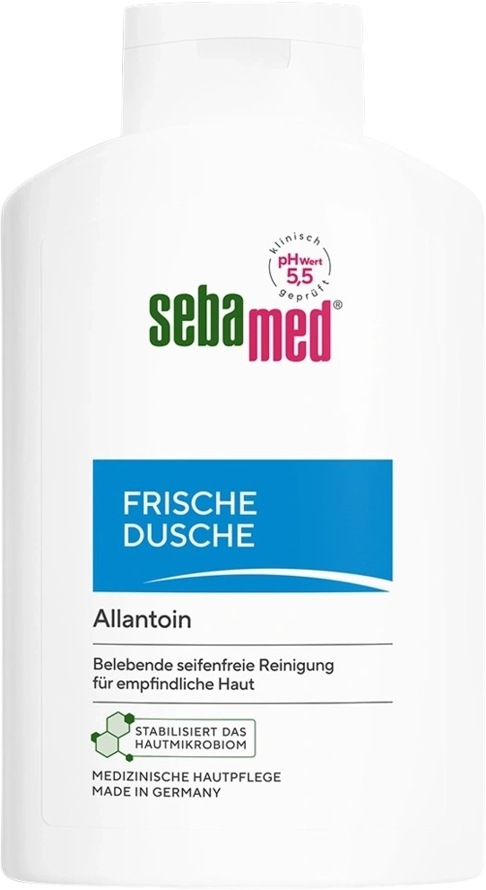 Die Frische Dusche von sebamed kann dank pH-Wert 5,5 die hauteigene Schutzbarriere unterstützen. Die milde und erfrischende Formel mit Allantoin und Milchsäure reinigt die Haut ganz besonders sanft und spendet wichtige Feuchtigkeit. Sie ist problemlos für die tägliche Anwendung bei sensibler und empfindlicher Haut geeignet.
