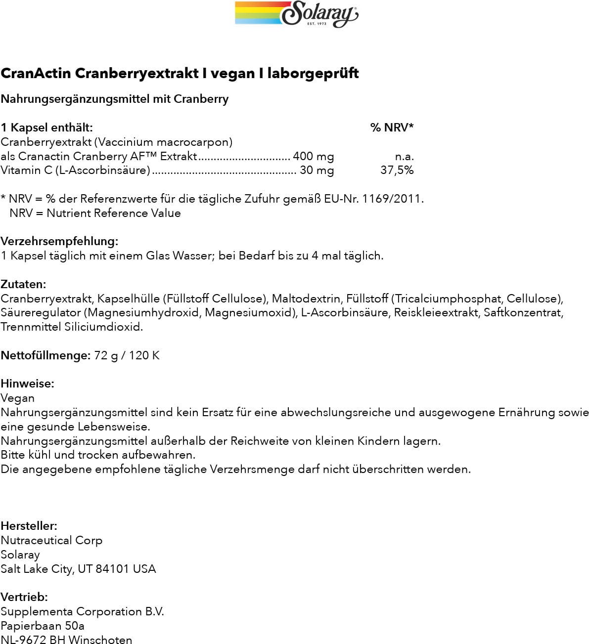 Erfahrungsberichte in Deutsch für Solaray CranActin Cranberry Urinary Tract