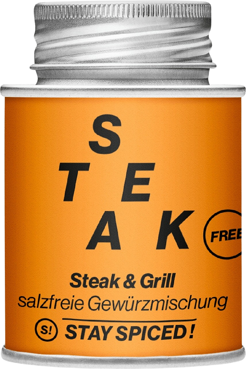 Das FREE im FREE Steak & Grill Gewürz von Stay Spiced! weist darauf hin, dass hier weder Salz, noch Zwiebel oder Knoblauch in die Dose dürfen. Ideal für alle, die aus gesundheitlichen Gründen auf diese Lebensmittel verzichten müssen oder wollen.