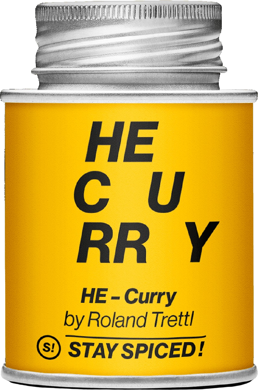 Als gebürtiger Italiener eine schmackhafte Curry-Mischung zu kreieren, würde viele als mutig, manche vielleicht sogar als unmöglich bezeichnen. Spitzenkoch Roland Trettl hat die Herausforderung dennoch erfolgreich gemeistert und für Stay Spiced! sein Curry HE - EDITION gemischt. Klassische Curry-Bestandteile wie Kurkuma, Bockshornklee, Zimt, Ingwer und Chilis bilden eine ausgewogene Mischung mit eher ungewöhnlichen Zutaten wie Rote Bete und Hibiskus.