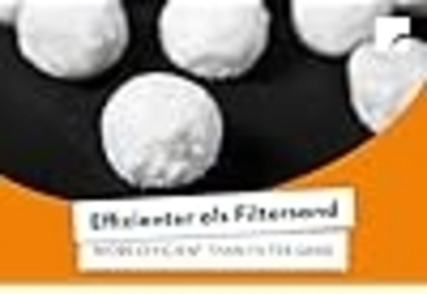 700 g entsprechen einer Menge von 25 kg Filtersand (Quarzsand). Die Polyethylen-Bälle filtern Rückstände bis zu einer Größe von 1,5 μm (Sand ca. 40 μm).