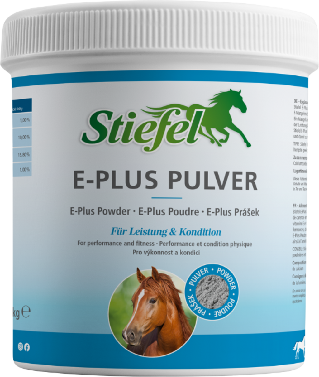 Stiefel E-Plus Pulver kann bei fütterungsbedingten Vitamin E-Mangelerscheinungen zur Aufwertung der Ration dienen. Ein Mangel an Vitamin E und Selen kann zur Beeinträchtigung der Leistungsbereitschaft, Kondition und Belastbarkeit führen. Stiefel E-Plus Pulver kann die Sauerstoffversorgung verbessern und damit zur Steigerung der Leistungsfähigkeit beitragen.