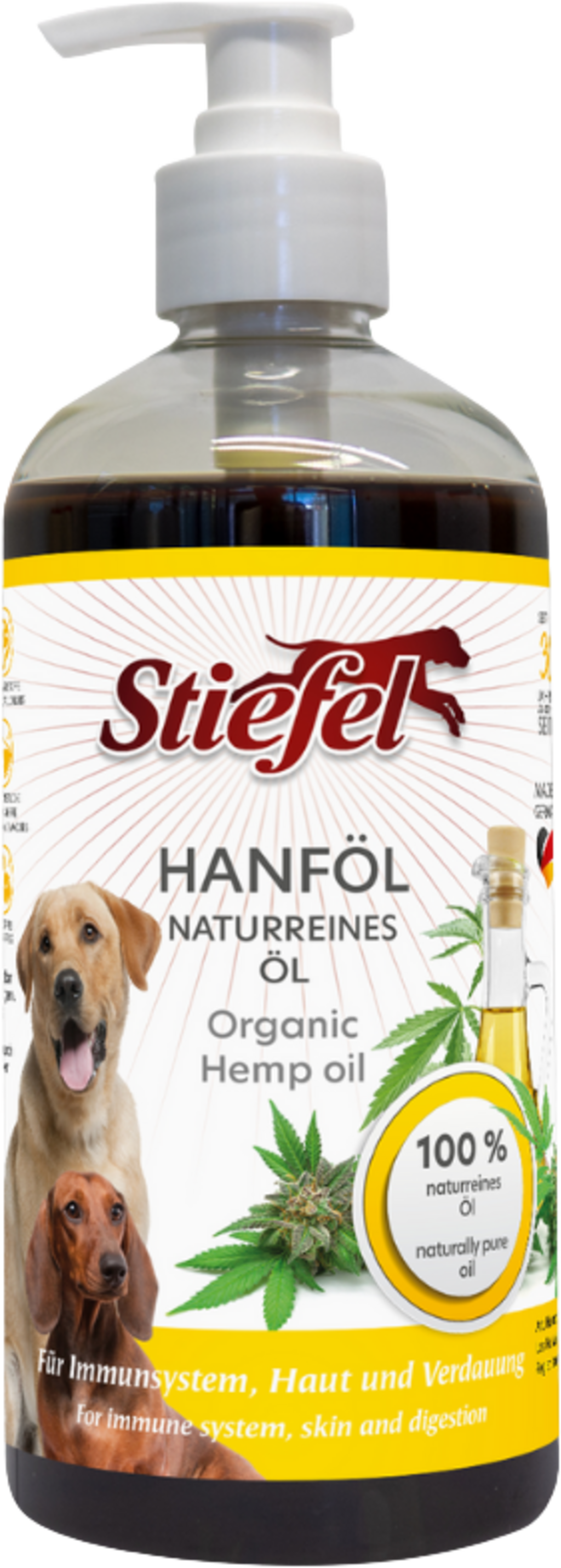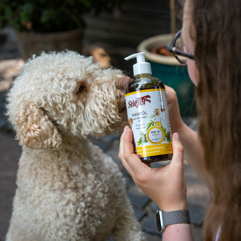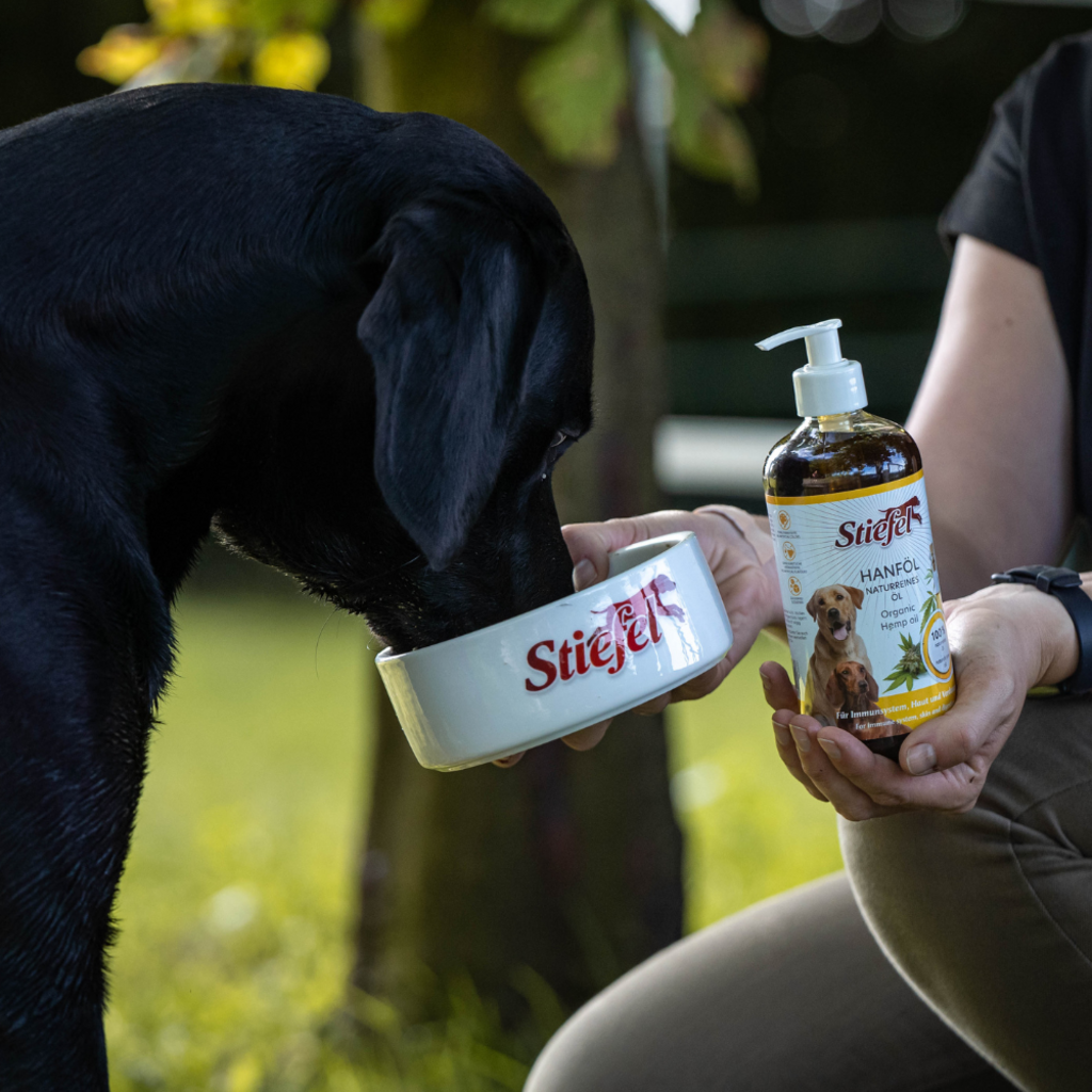 Stiefel Hanföl ist ein 100 % reines Naturprodukt und für Hunde in allen Lebensphasen geeignet. Die Inhaltsstoffe können Haut und Fell des Hundes verbessern und das Abwehrsystem des Hundes stärken.
