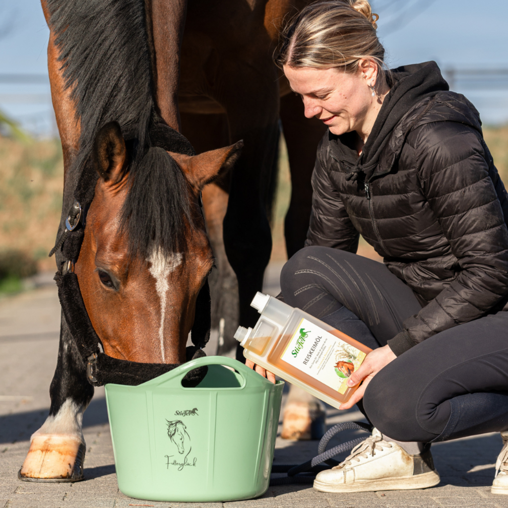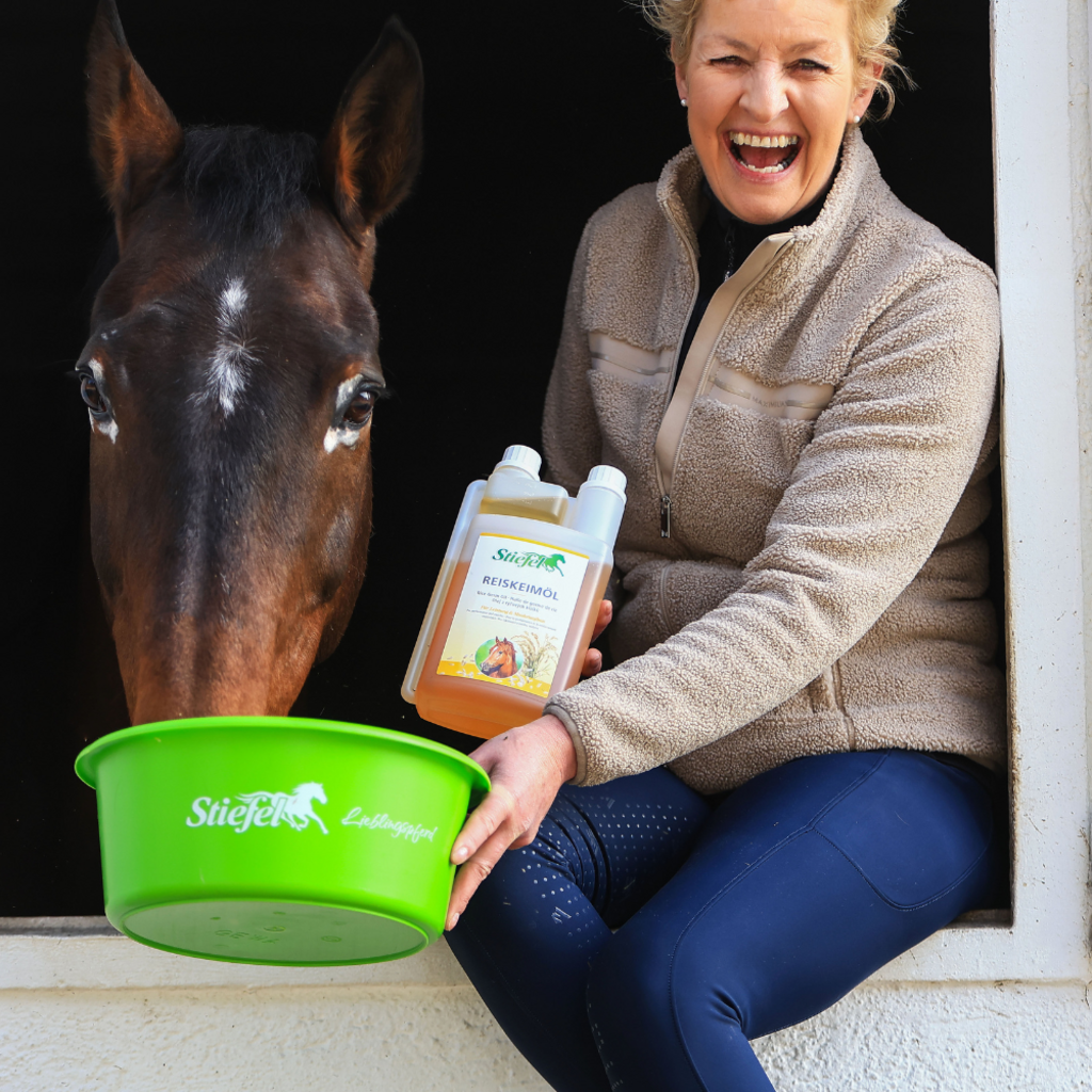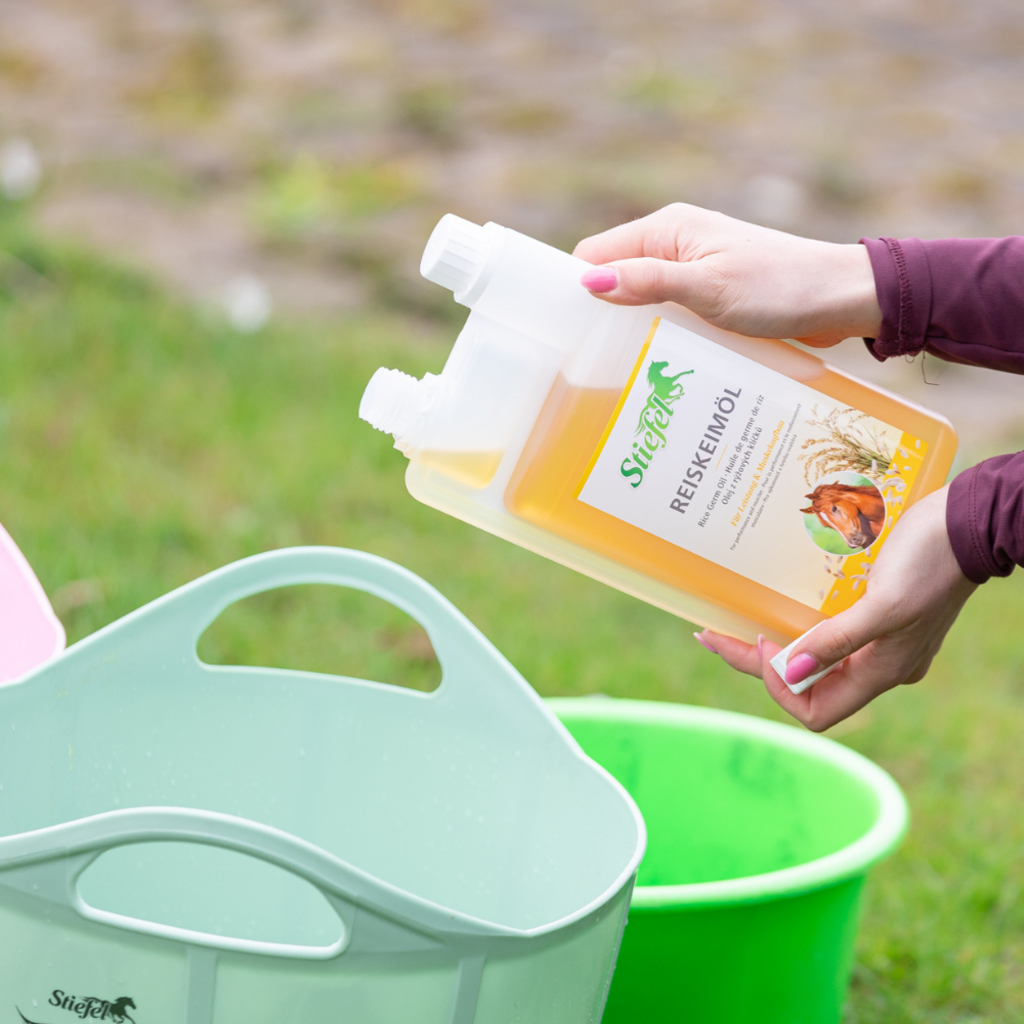 Stiefel Reiskeimöl enthält natürliches Gamma-Oryzanol zur Unterstützung im Muskelaufbau und zur Steigerung der Leistungsbereitschaft. Das hochwertige, 100 % naturreine Öl stellt durch seine wertvollen Inhaltsstoffe eine sinnvolle Aufwertung der Futterration von Sportpferden dar.