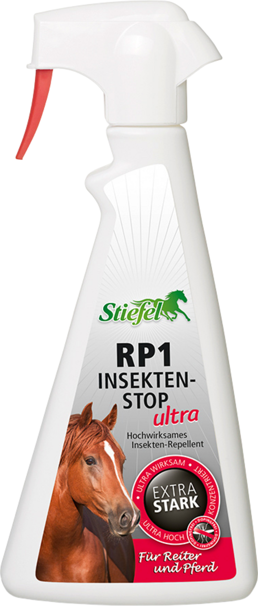 Stiefel RP1 Insekten-Stop Ultra ist ein hochwirksames Insekten-Repellent mit aktivem Zecken- und Insektenschutz nach Biozidverordnung mit einer erhöhten Wirkstoffkonzentration für langanhaltenden Schutz. Der enthaltene Wirkstoff Saltidin® (Icaridin) ist für uns Menschen beinahe geruchlos und belästigt weder Mensch noch Pferd mit einem unangenehmen Geruch. Insekten hingegen nehmen Gerüche sensorisch wahr und werden von dem Repellent abgeschreckt.