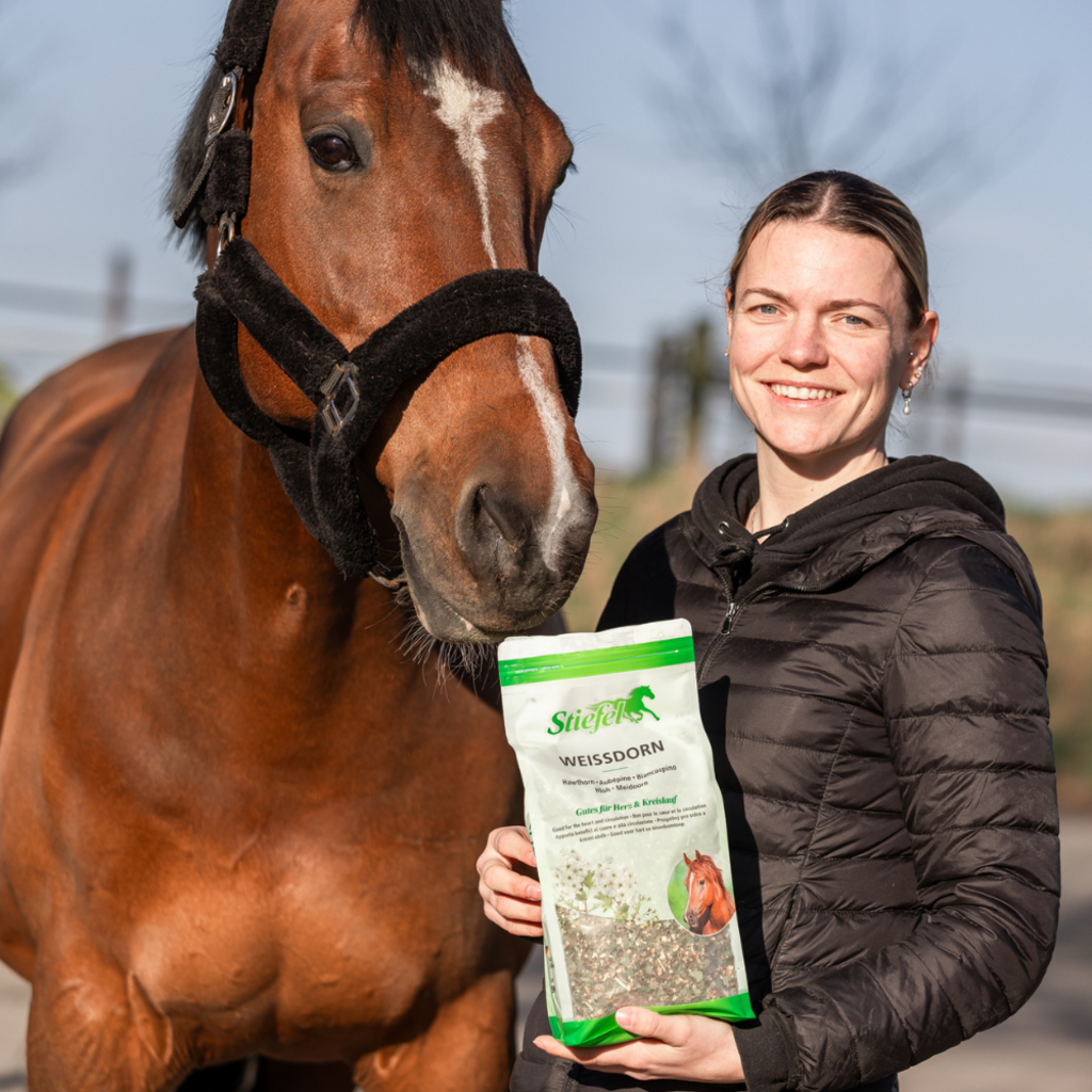 Stiefel Weißdorn kann zur Unterstützung von Herz und Kreislauf des Pferdes eingesetzt werden. Stiefel Weißdorn kann die Sauerstoff- und Nährstoffzufuhr des Herzens steigern und sich positiv auf den Blutdruck sowie Herzrhythmus auswirken. Damit ist Stiefel Weißdorn optimal für ältere Pferde und für Sportpferde zur Leistungssteigerung geeignet.
